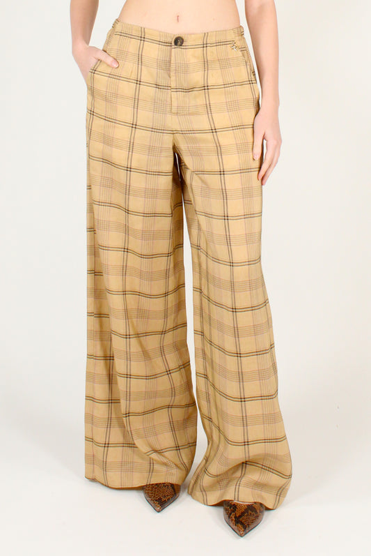 Pantaloni Palazzo Stampa Tartan Viscosa e Lino