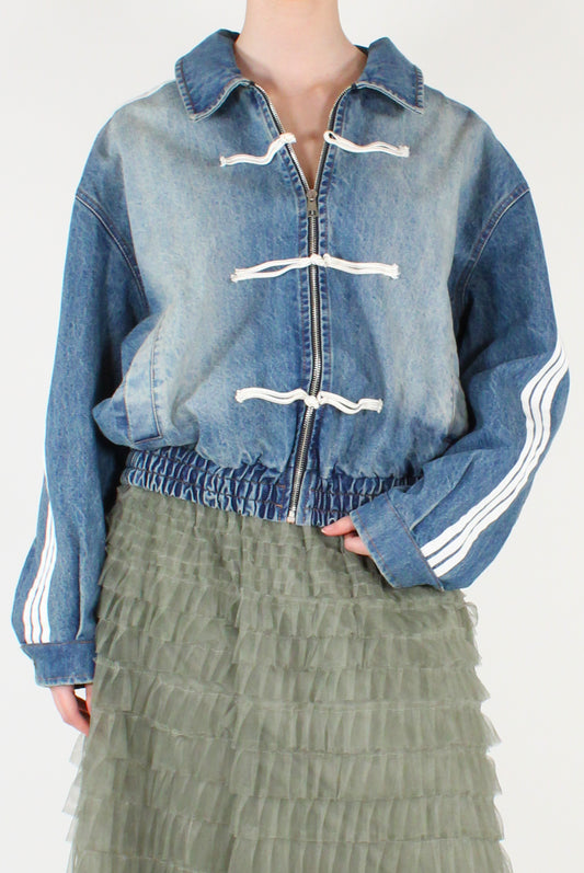 Bomber in Denim Slavato con Alamari