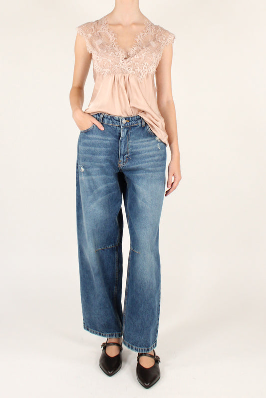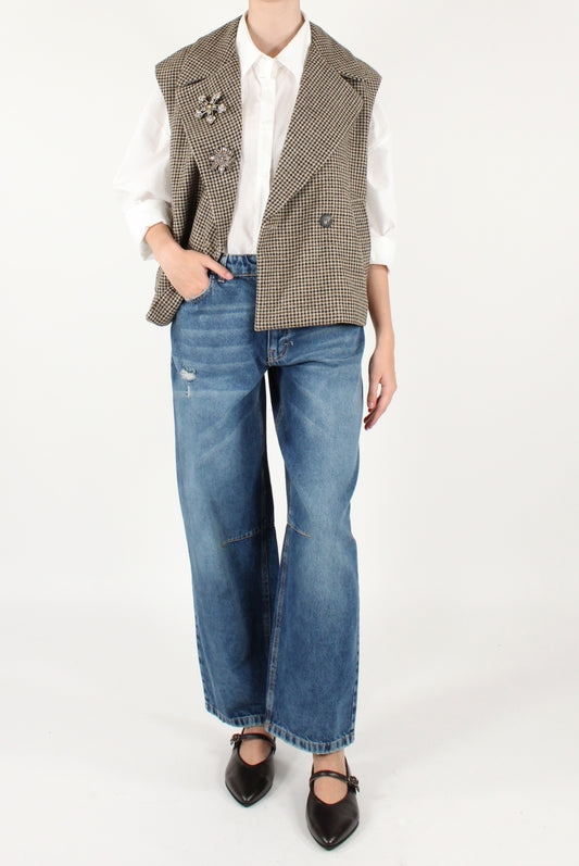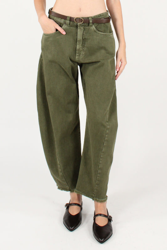 Jeans Balloon con Cucitura e Orlo Taglio Vivo