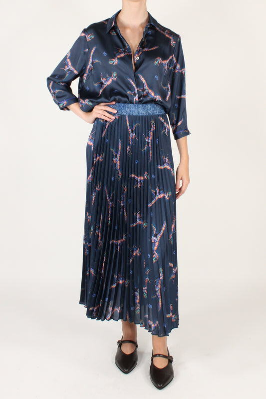 Gonna Lunga Plissettata Stampa T-Rex
