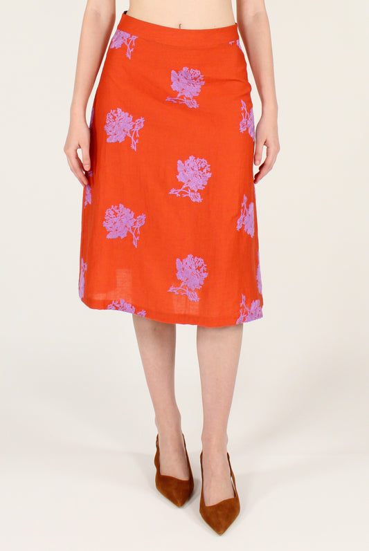 Gonna Midi Svasata con Ricami Floreali
