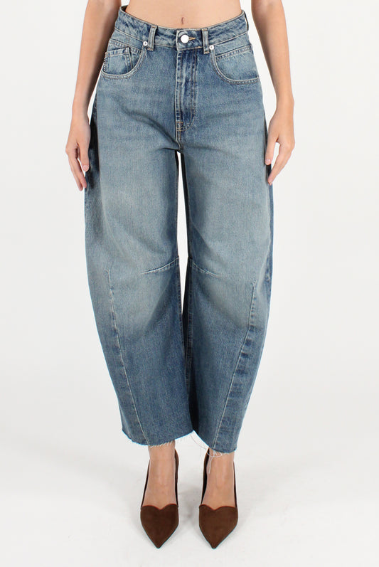Jeans Balloon con Cucitura e Orlo Taglio Vivo