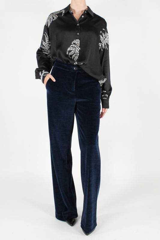 Pantaloni a Palazzo in Velluto a Costa Larga