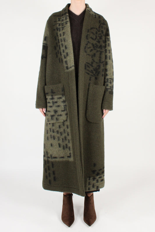 Cappotto Lungo Aperto in Misto Lana