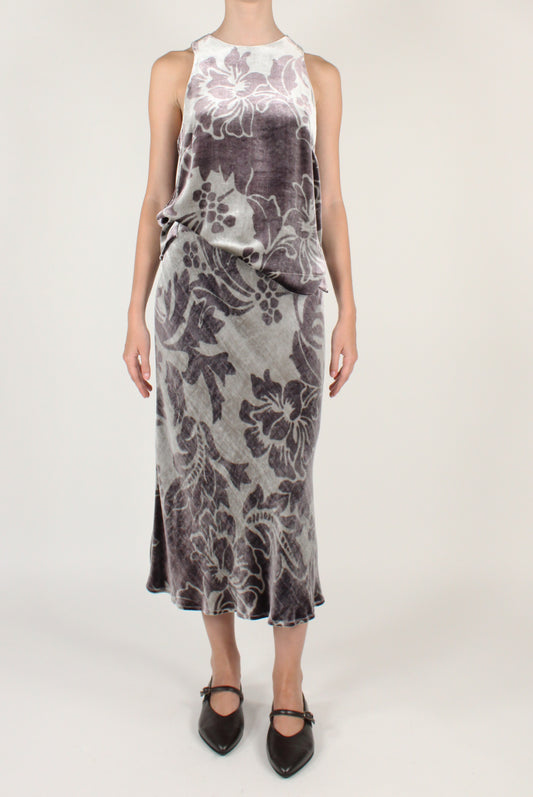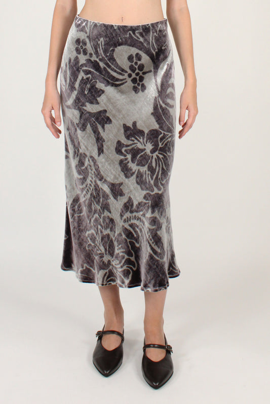 Gonna Lunga Svasata in Velluto Stampato