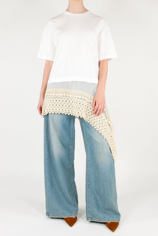 T-shirt Over con Viscosa e Pizzo Asimmetrico