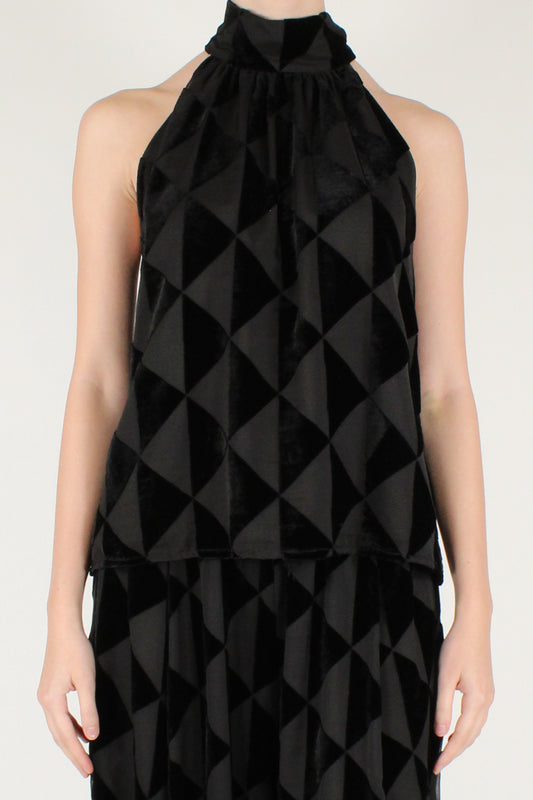 Top Asimmetrico Velluto con Paillettes e Pizzo