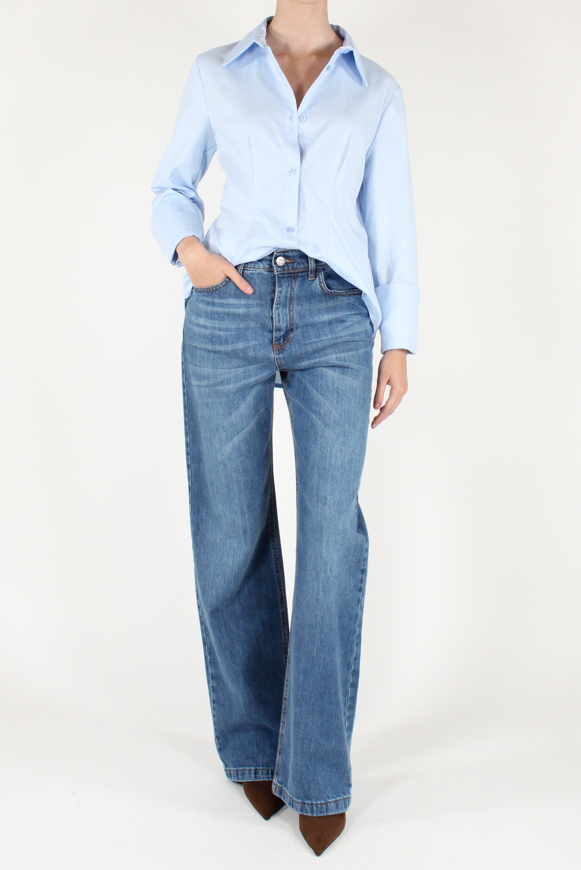 Fitted shirt in cotton pique. Long sleeves, button fastening, and wide cuffs.