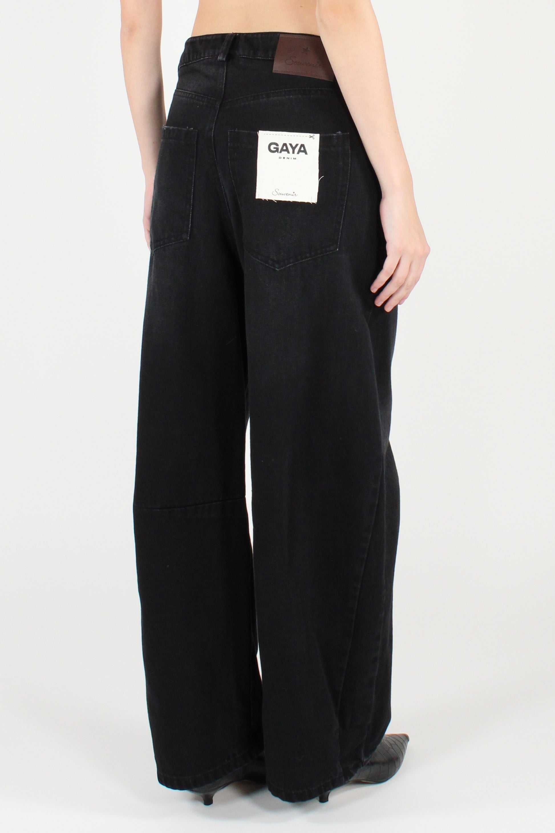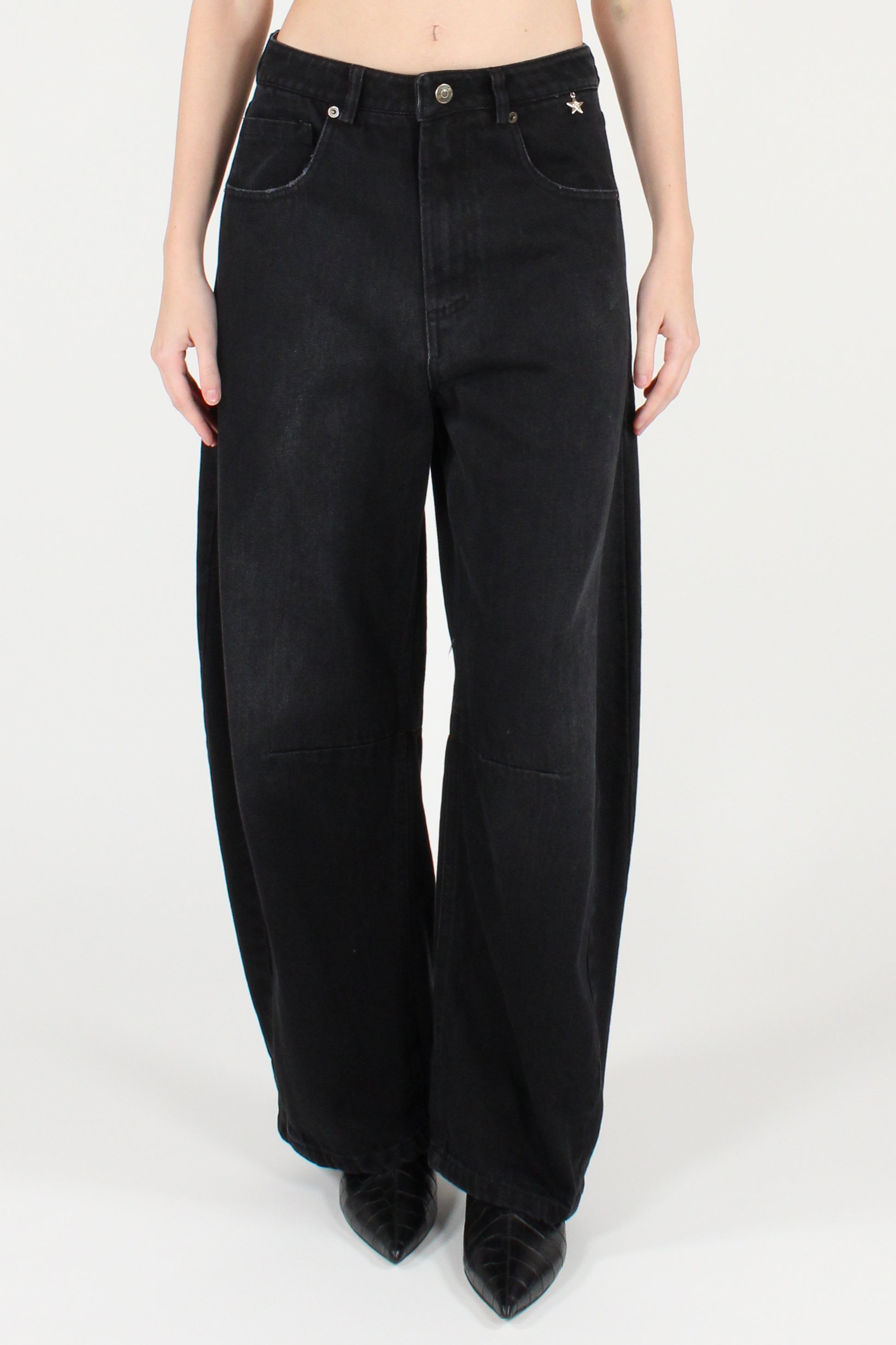 Jeans balloon modello Gaya color nero Cinque tasche con chiusura a zip e bottone, con passanti. Dettaglio cuciture a vista.