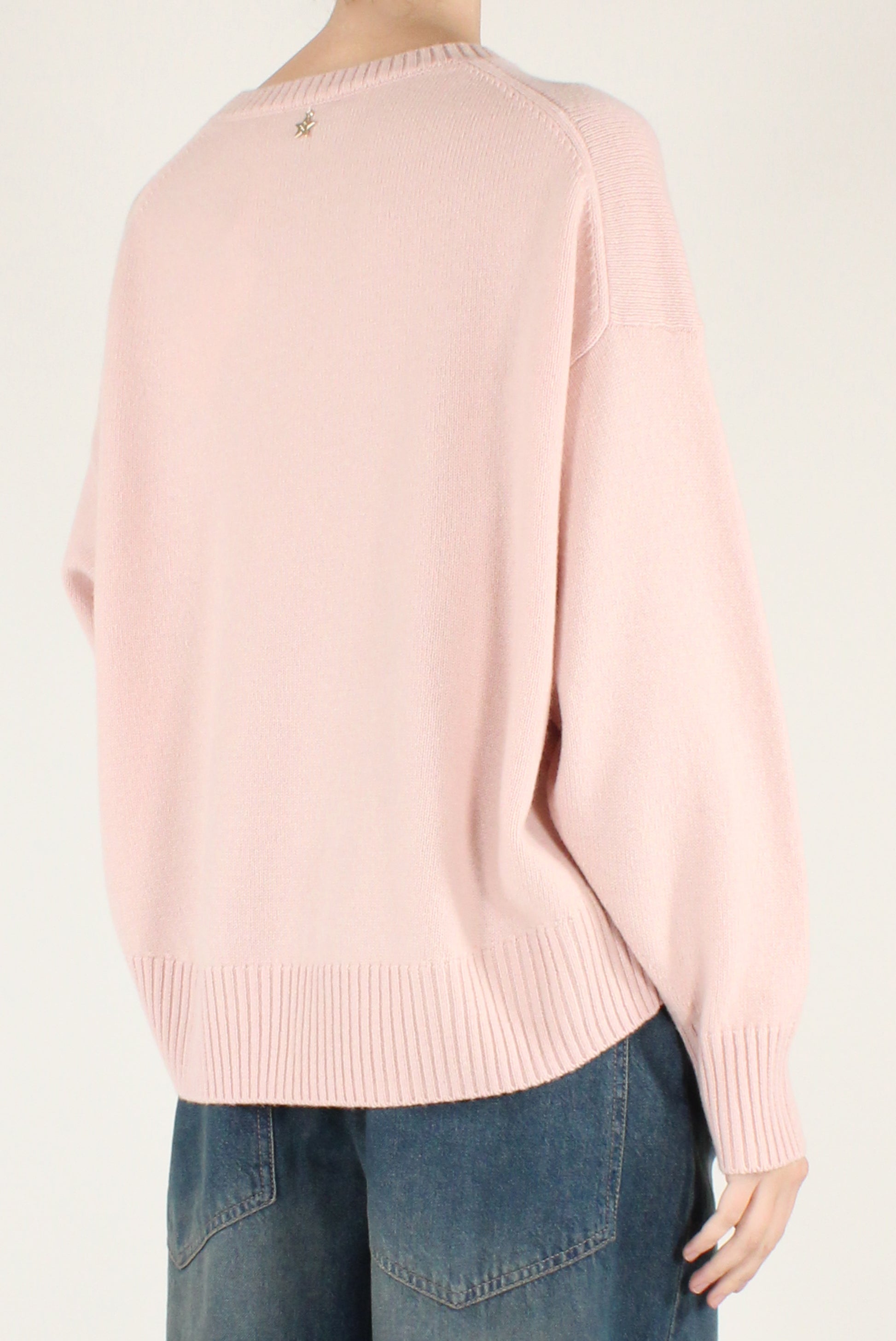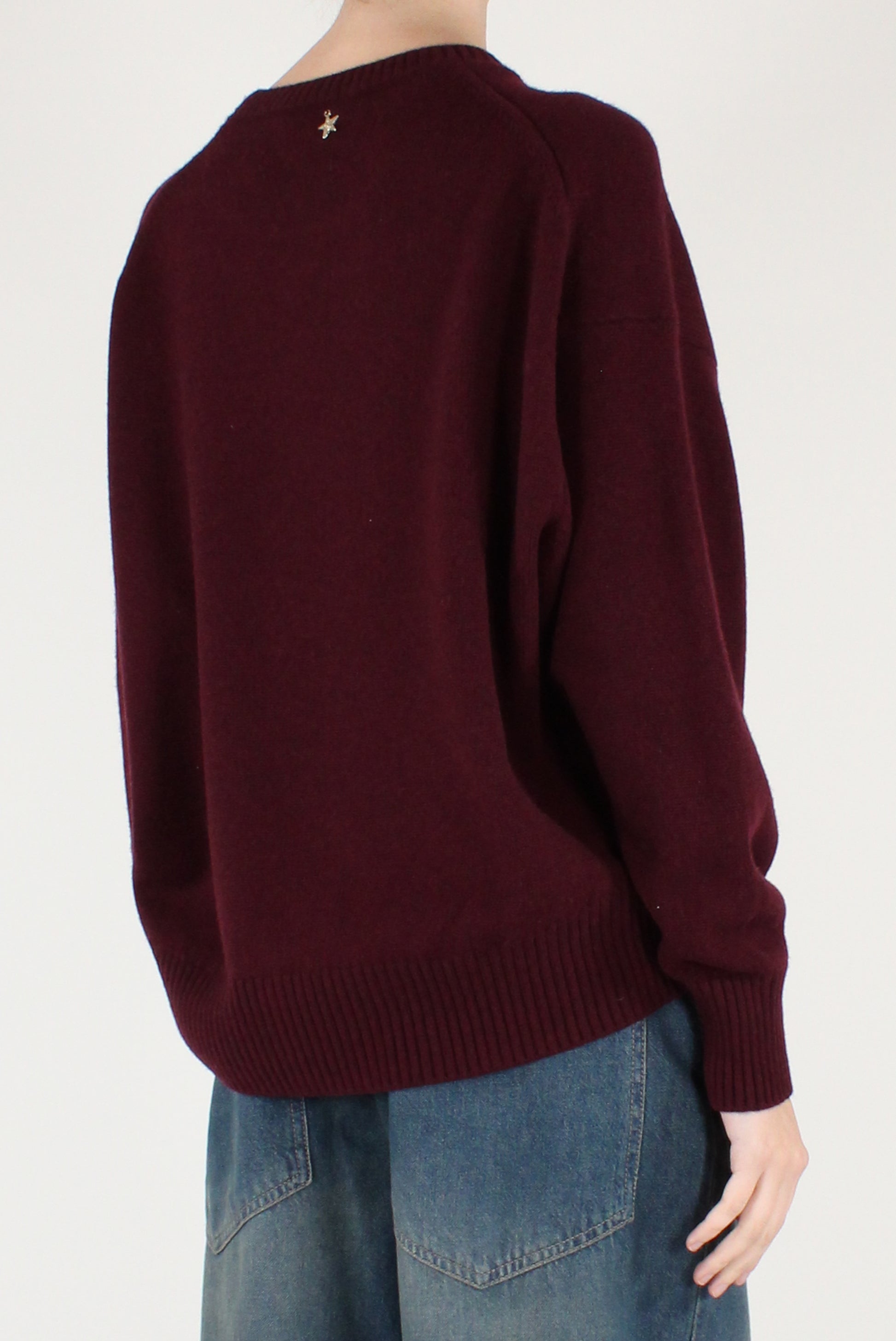 Maglione girocollo in pura lana. A maniche lunghe, con dettaglio costine ai profili.