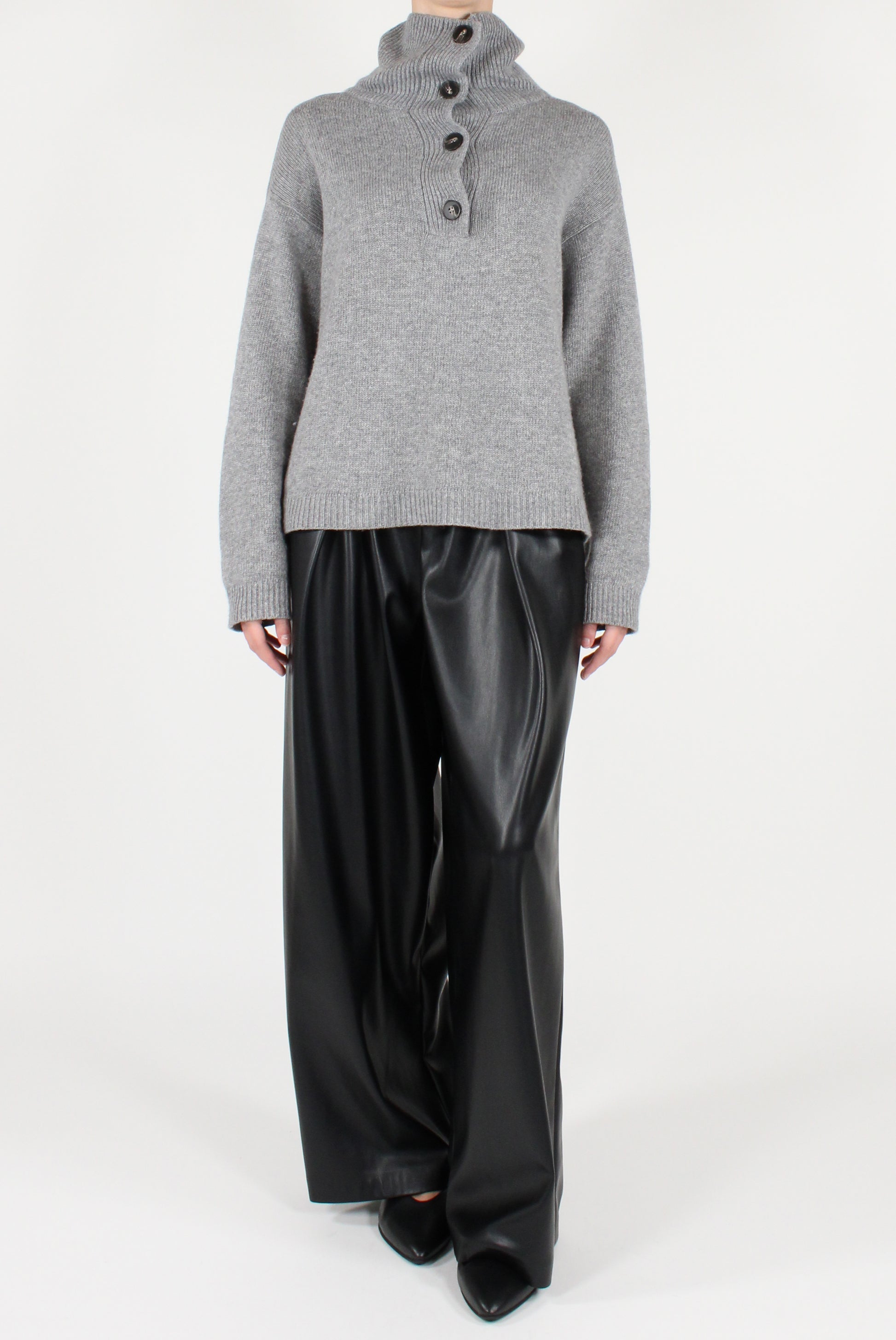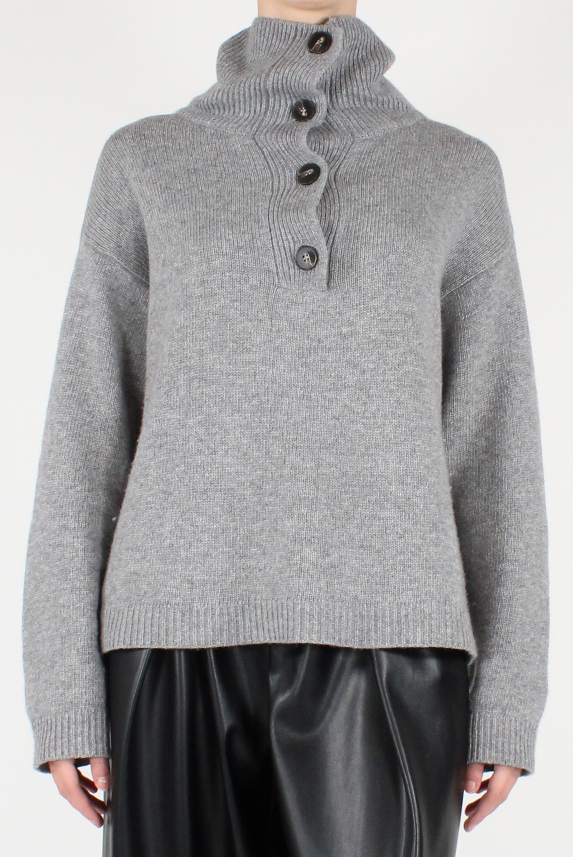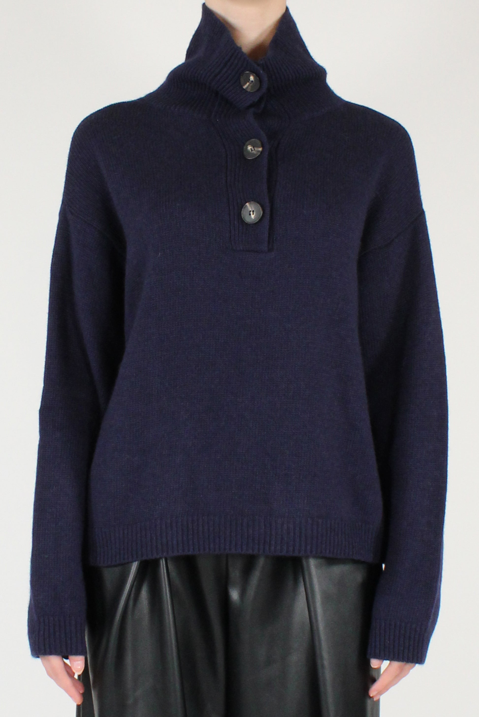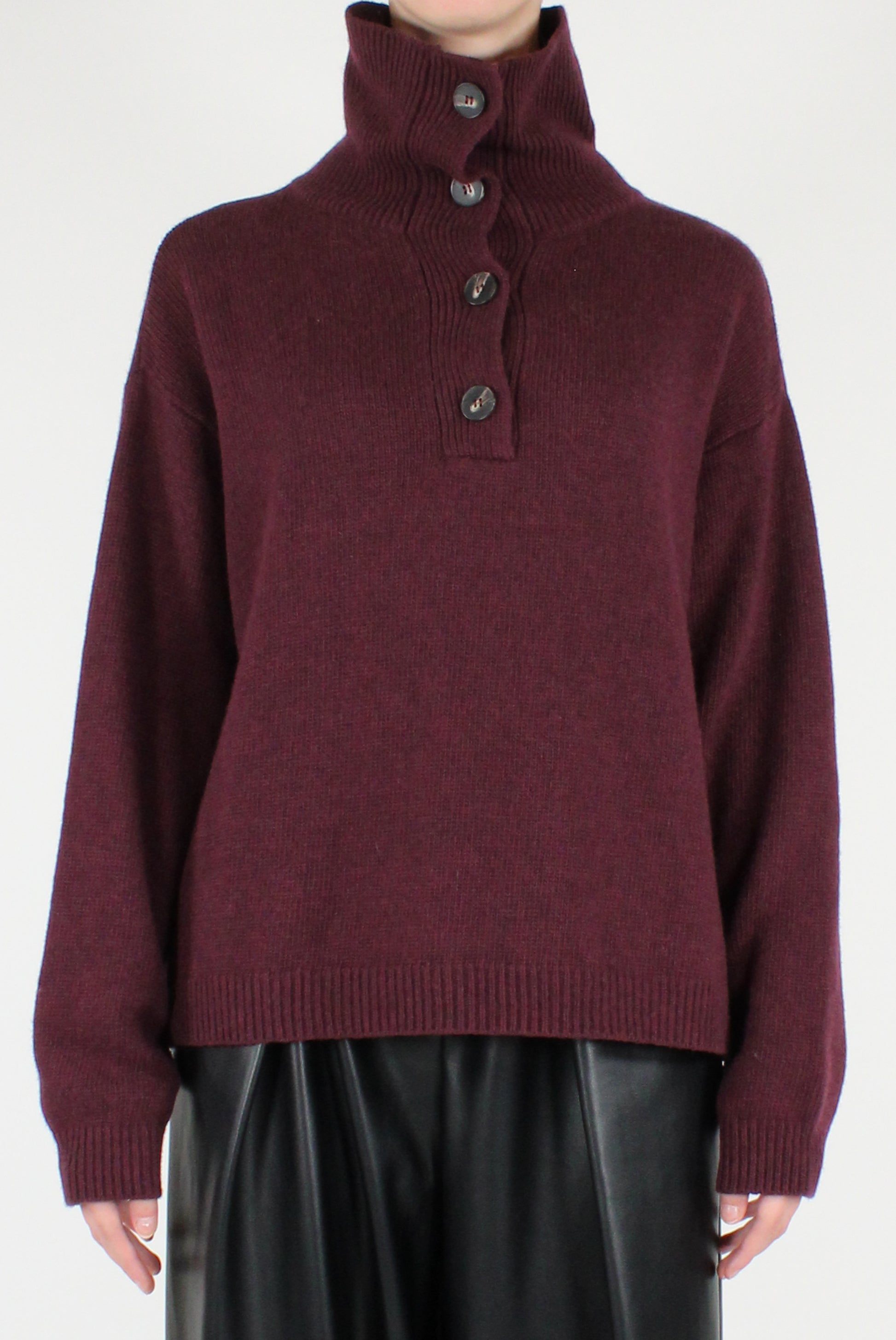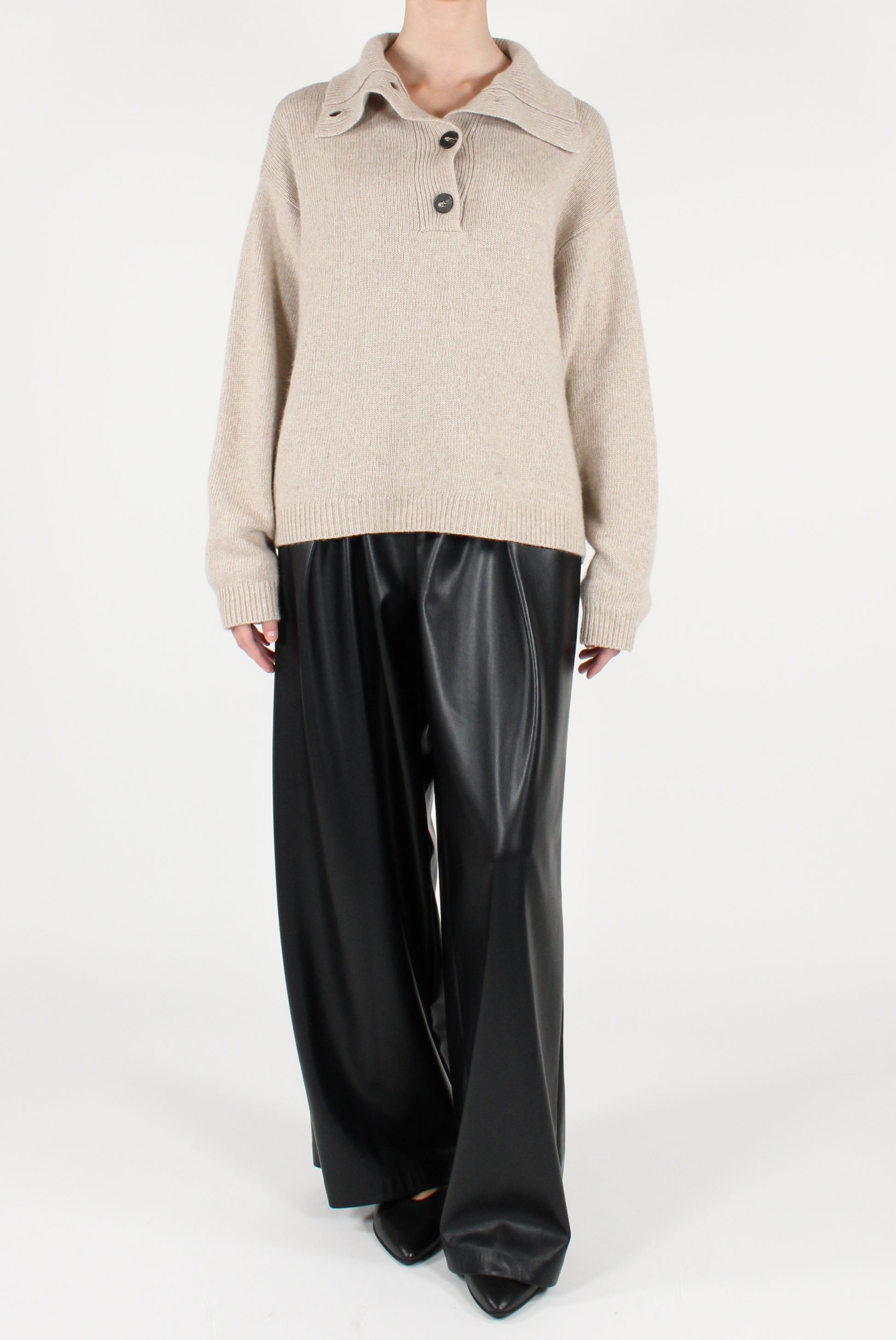 Maglione scollo a polo con bottoni. A collo alto con allacciatura a bottoni, maniche lunghe, vestibilità over, taglio a scatola.