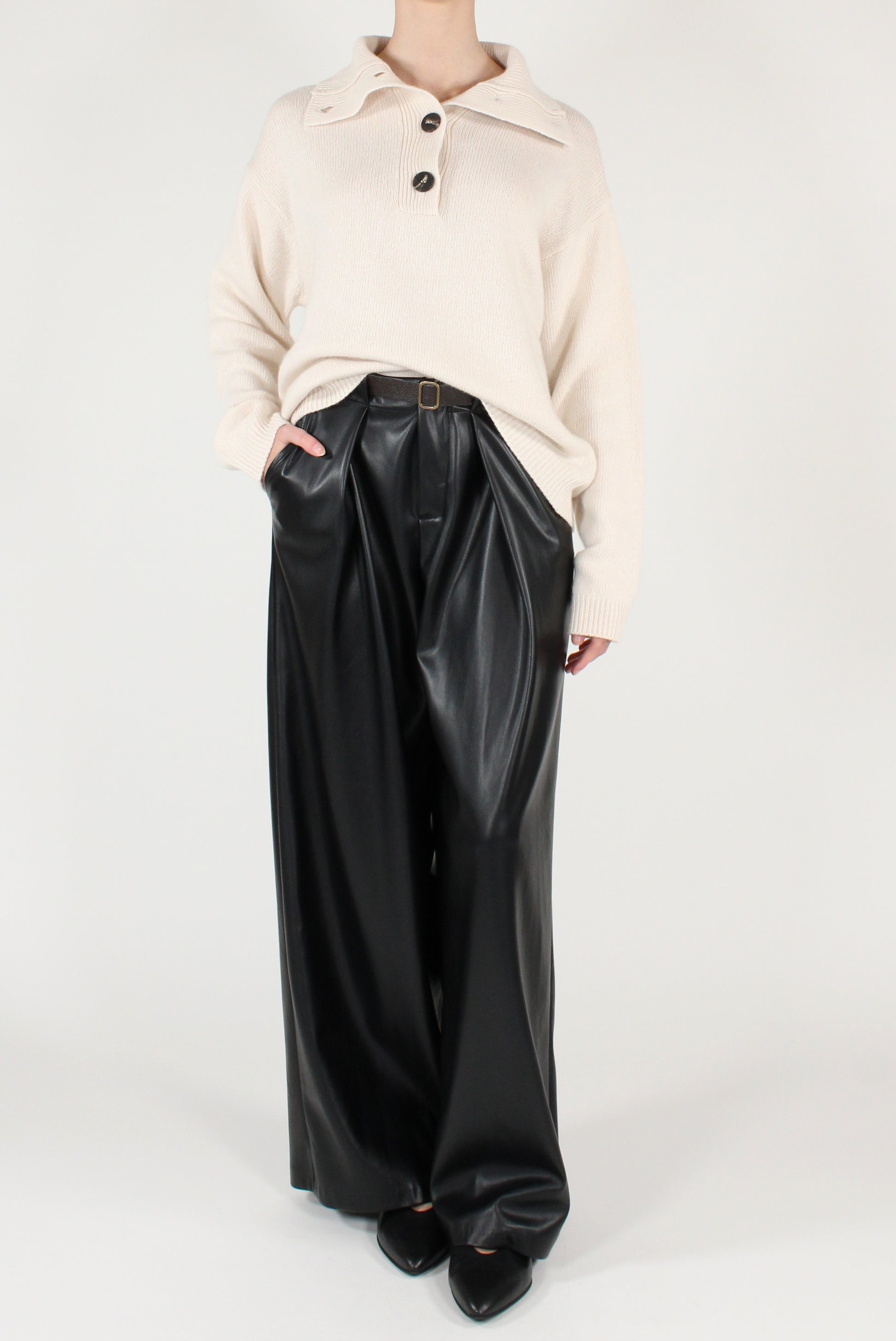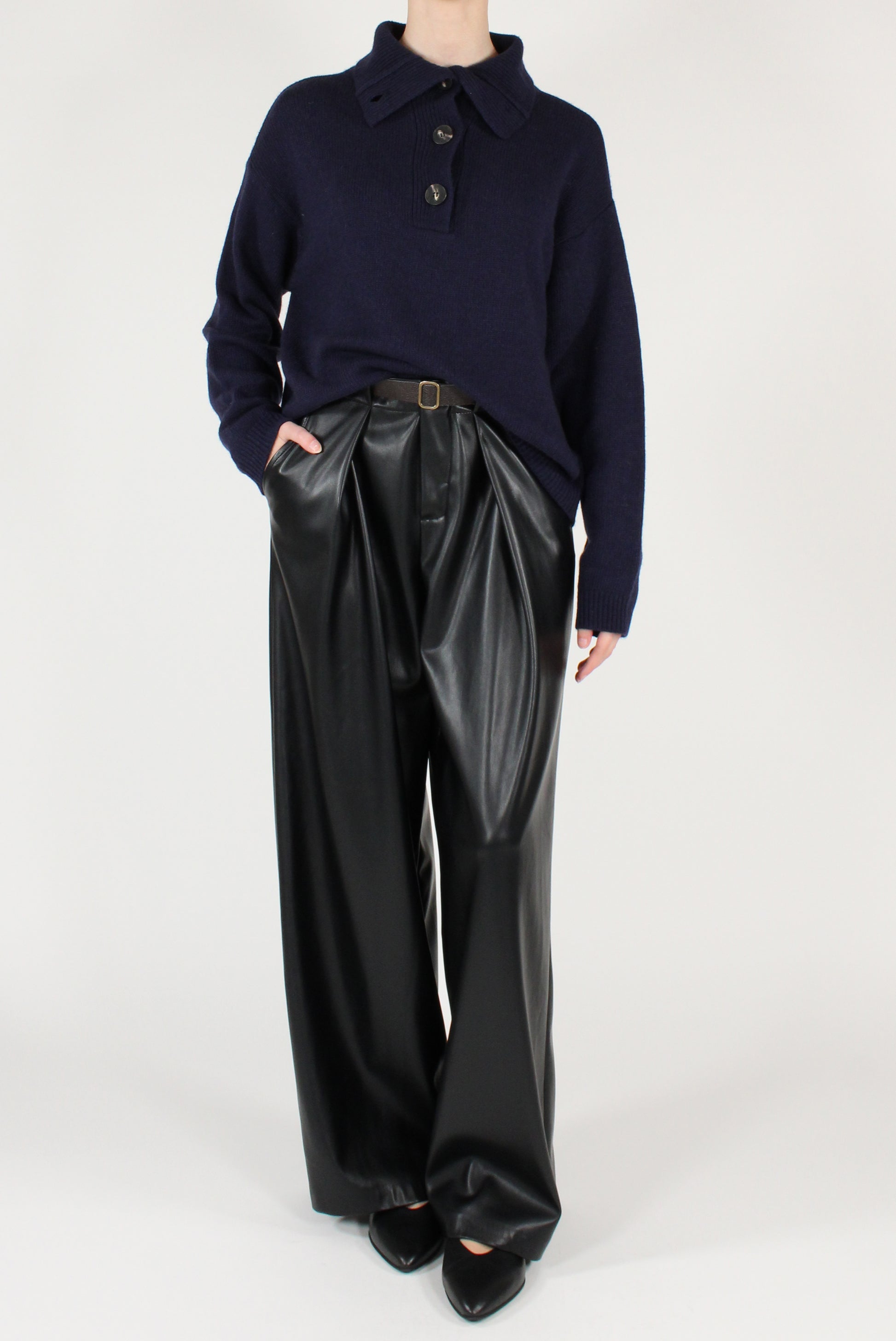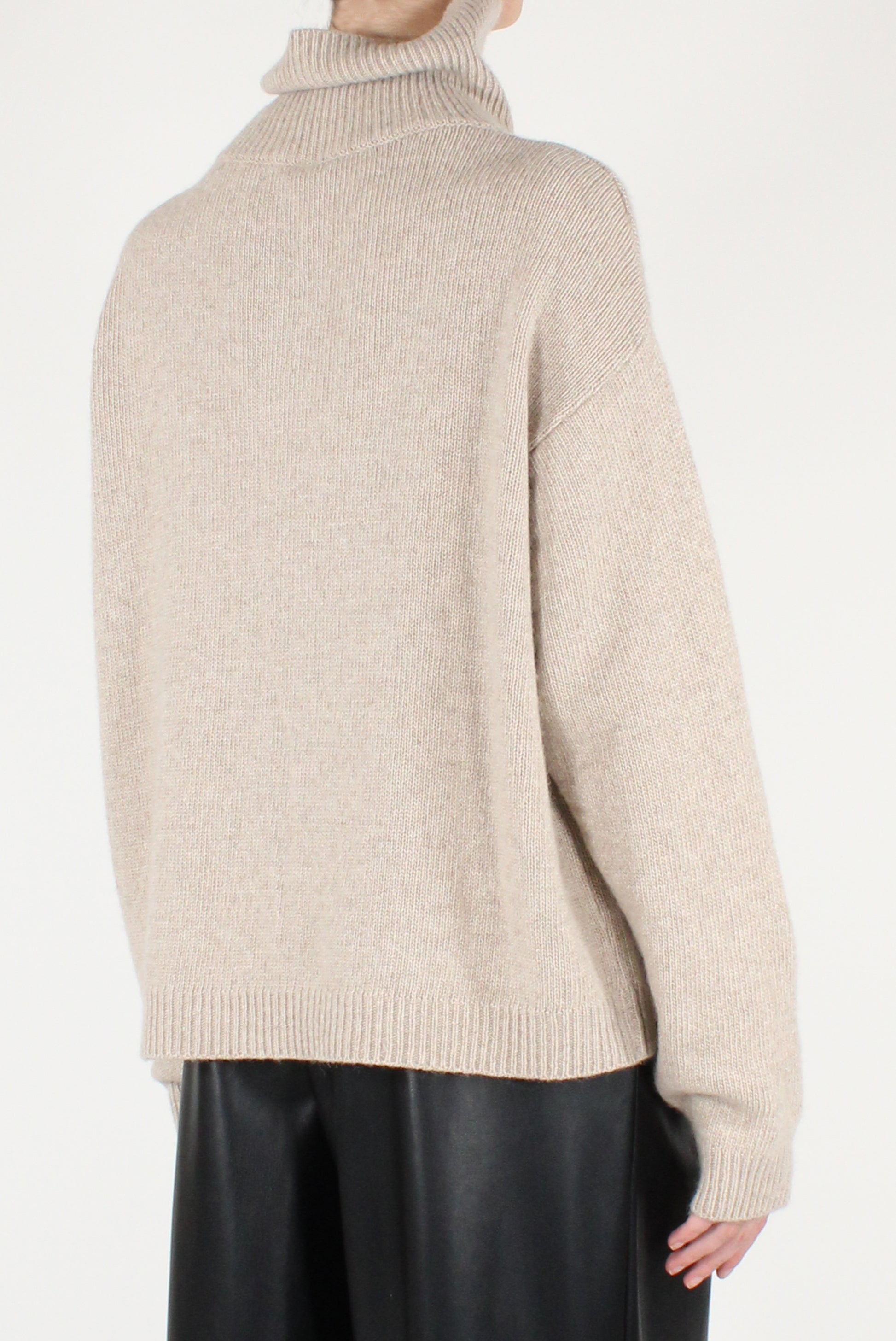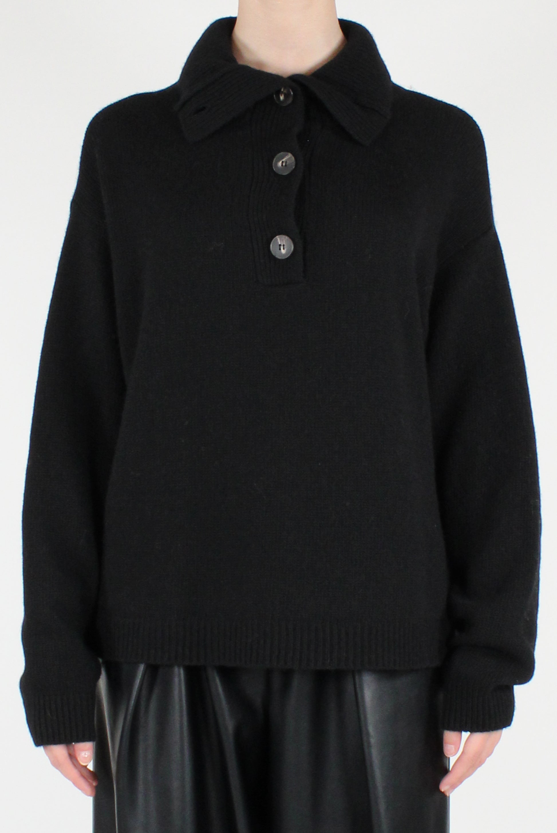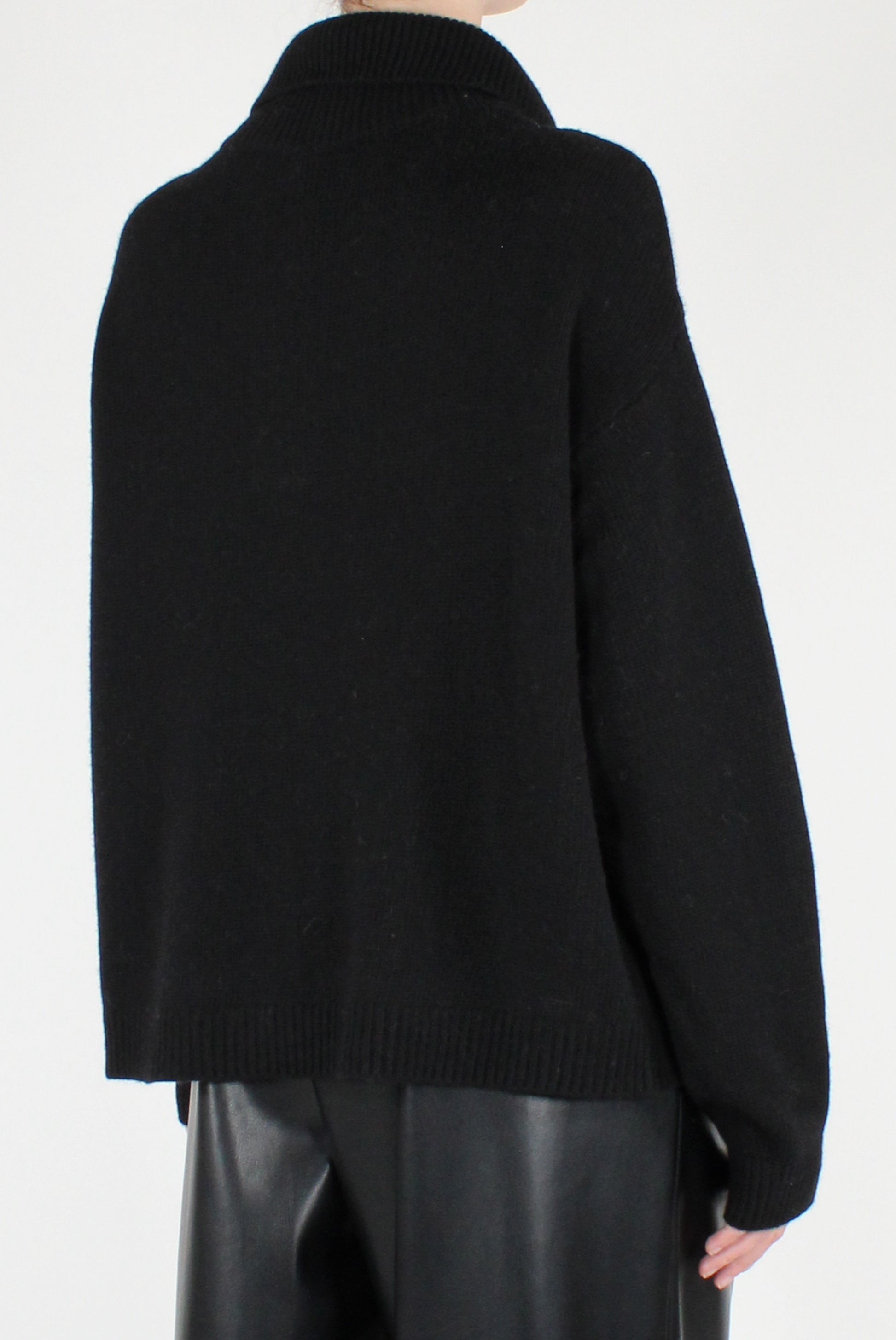 Maglione scollo a polo con bottoni. A collo alto con allacciatura a bottoni, maniche lunghe, vestibilità over, taglio a scatola.