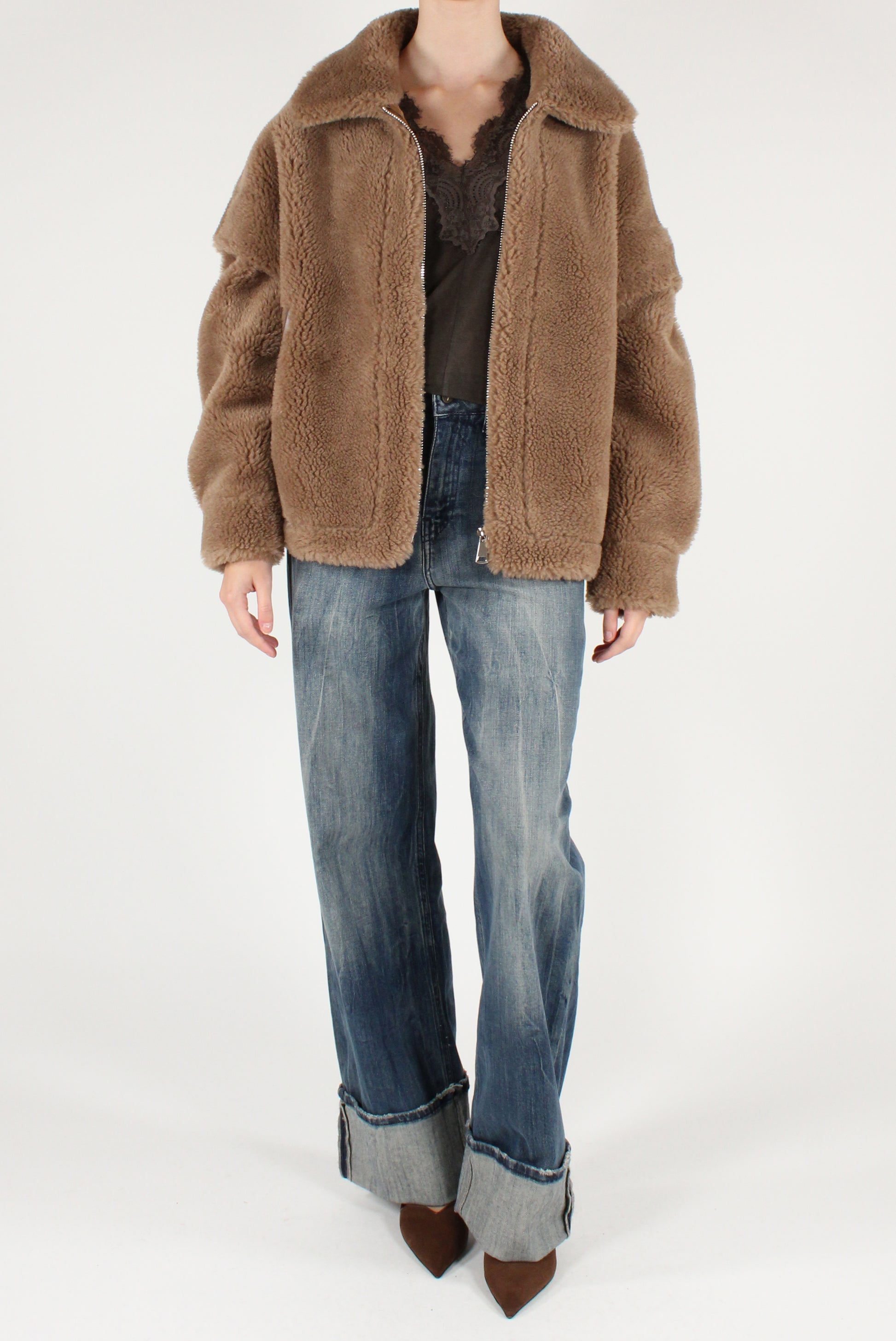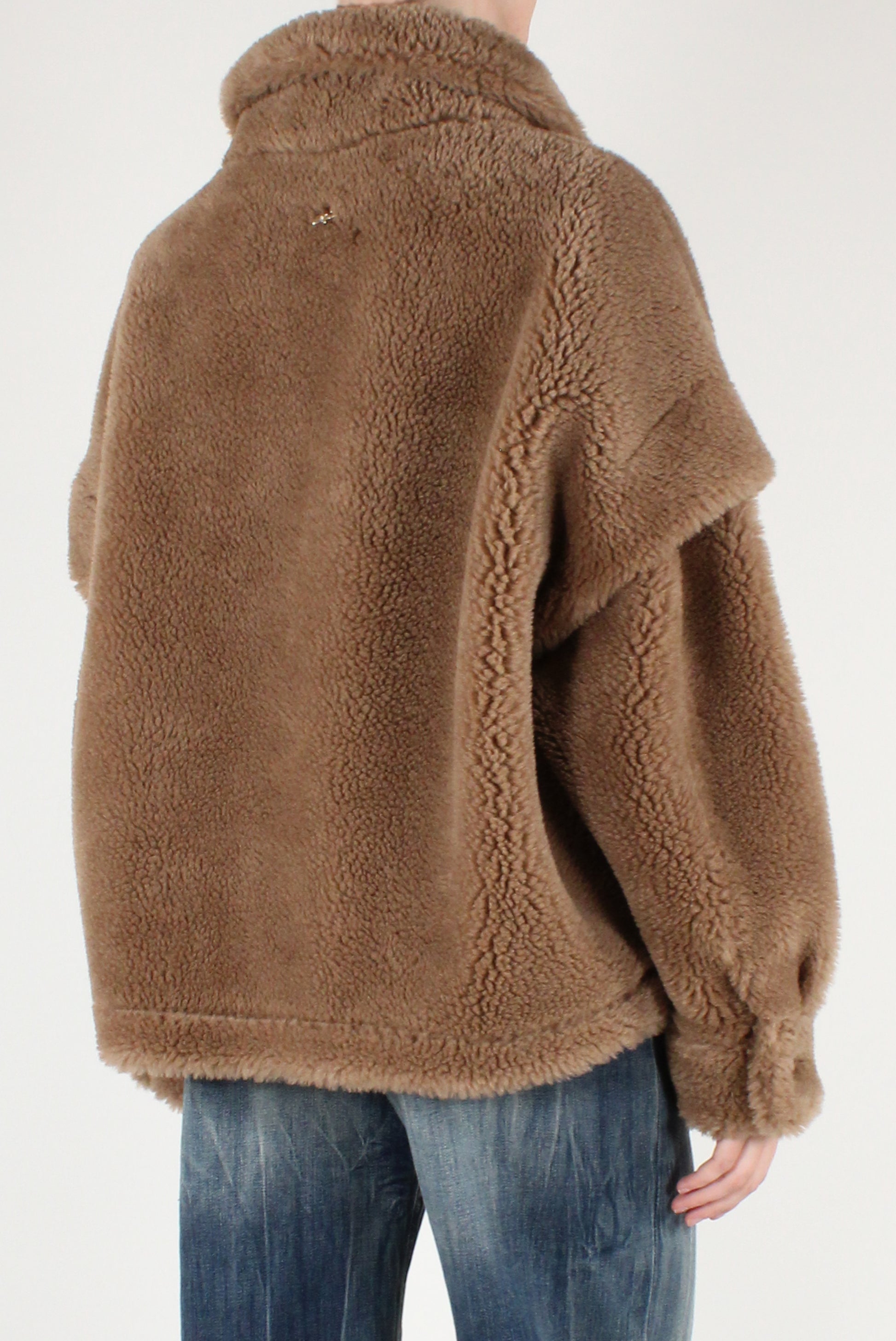 Bomber teddy con maniche removibili con zip. Con tasche laterali, ampio colletto e chiusura a zip, vestibilità over.