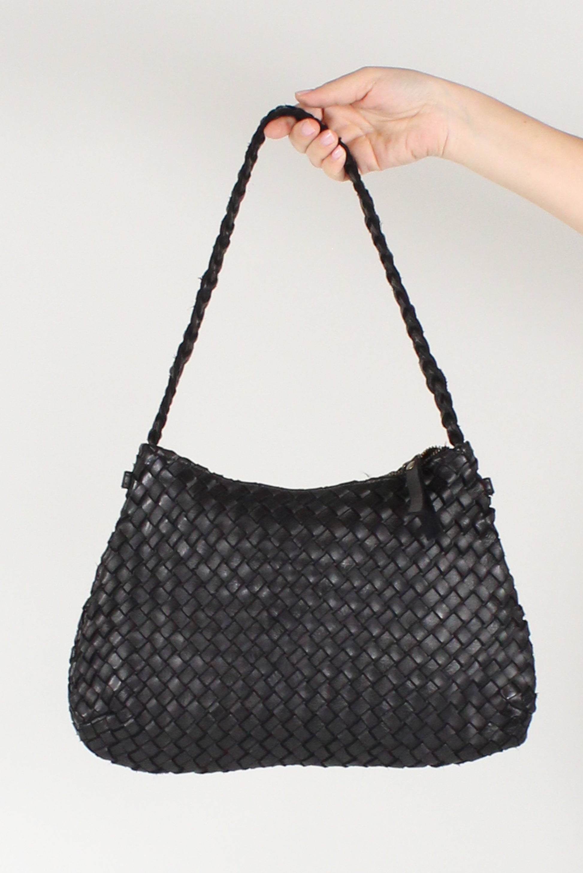 Borsa a spalla in pelle intrecciata. Manico intrecciato, a uno scomparto con chiusura a zip. Tasca interna con chiusura a zip, tracolla inclusa removibile.