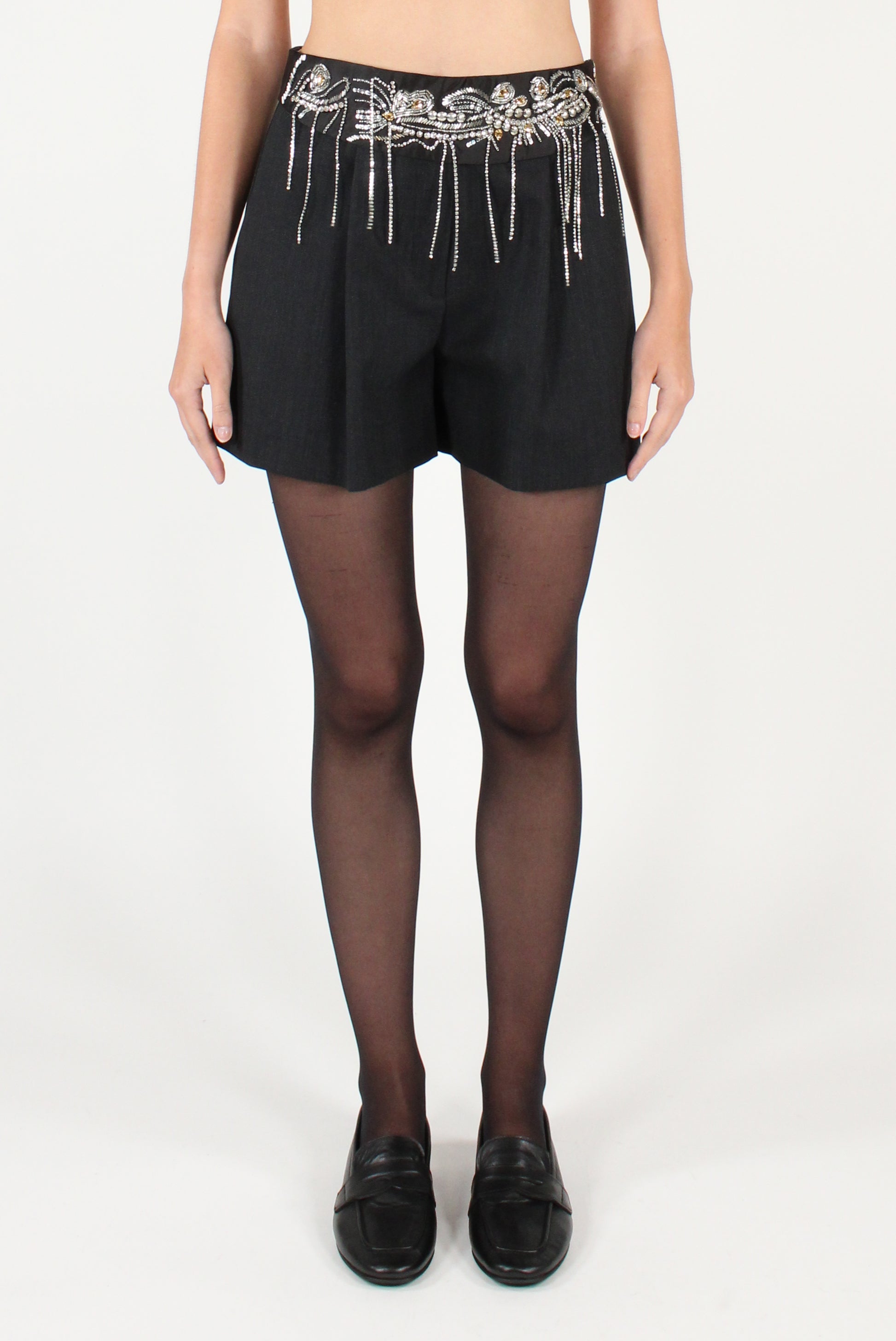 Cintura con strass e perline applicate. A fascia, regolabile con fiocco sul retro.