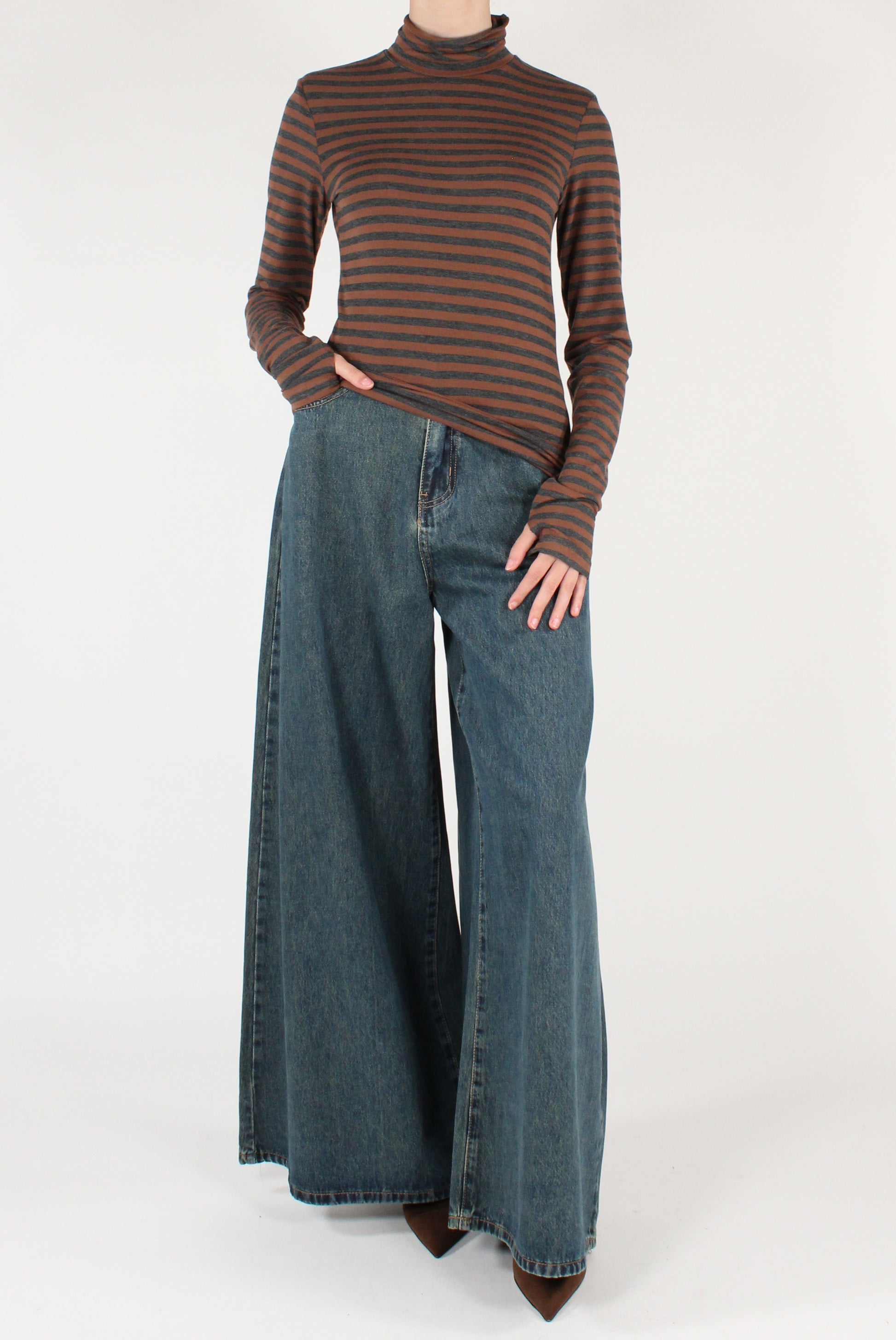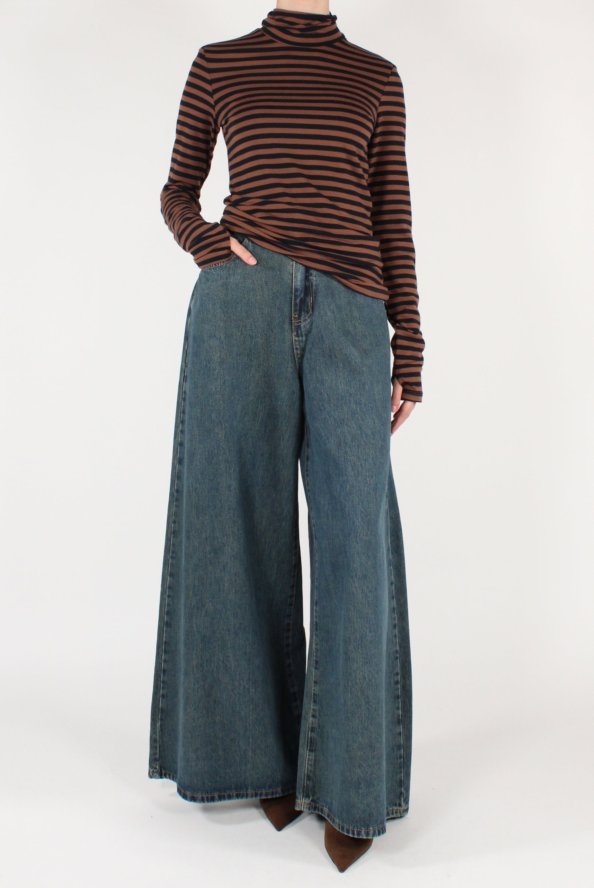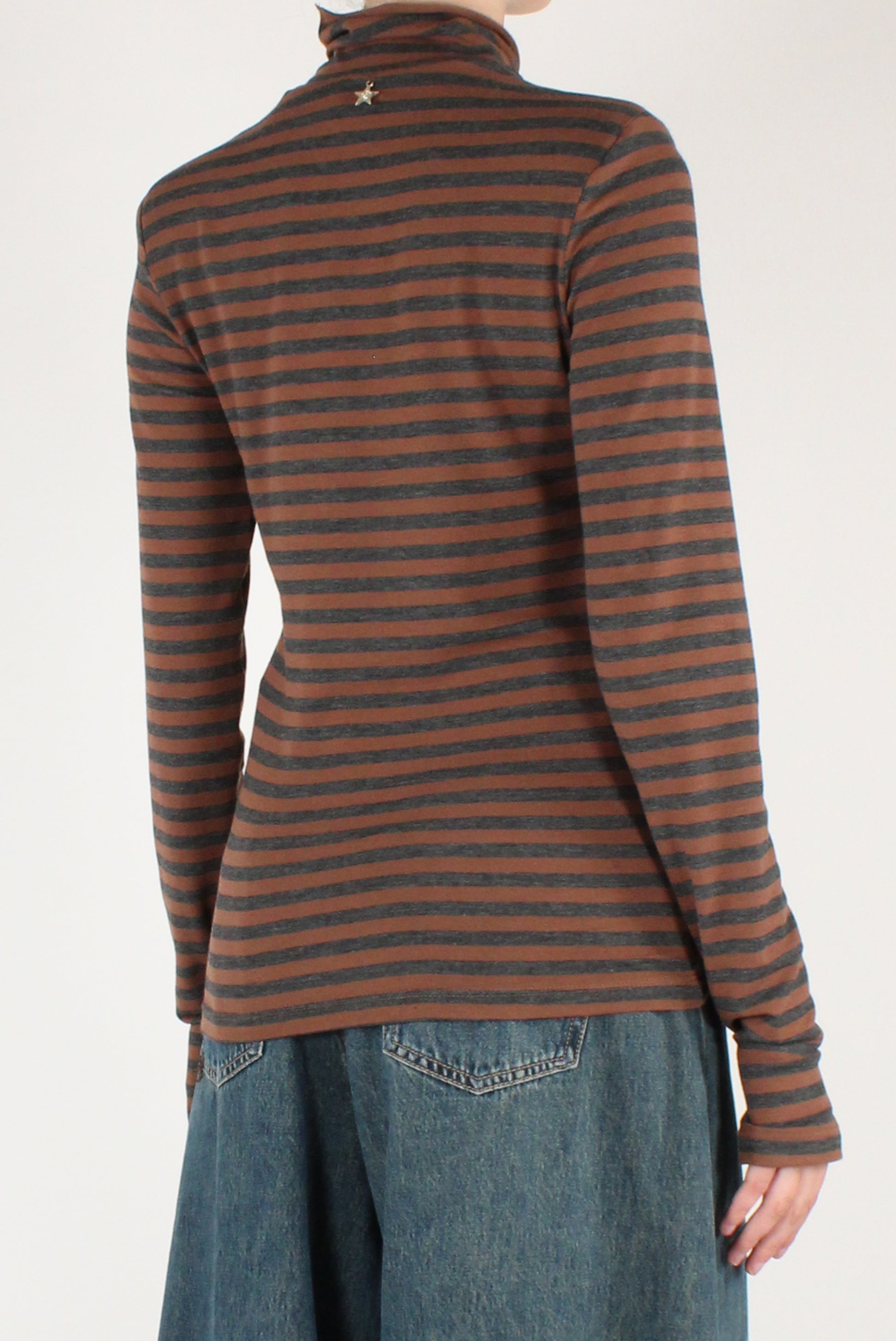 Dolcevita a righe con spalline strutturate. A maniche lunghe, vestibilità aderente. Dettaglio asole per i pollici.