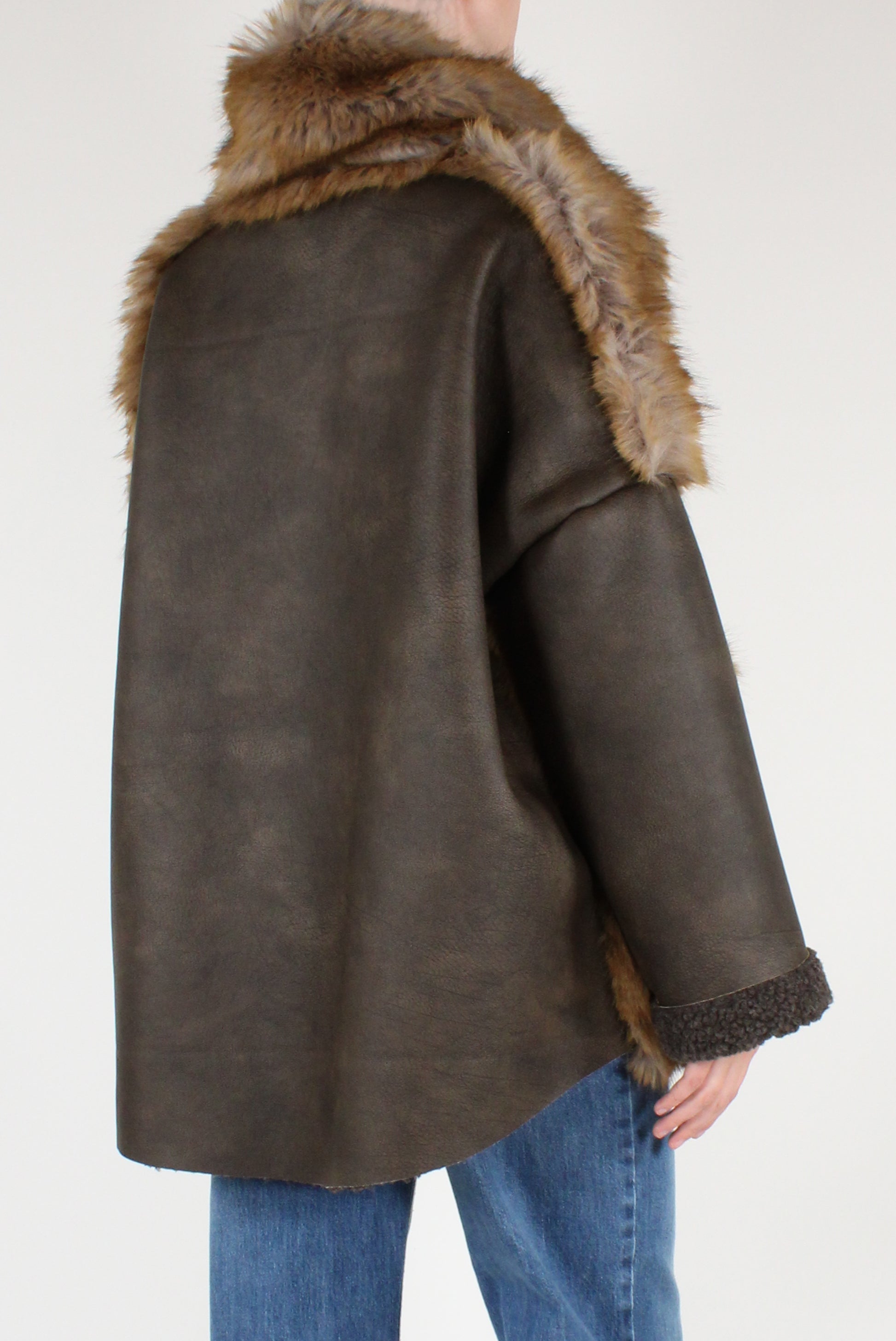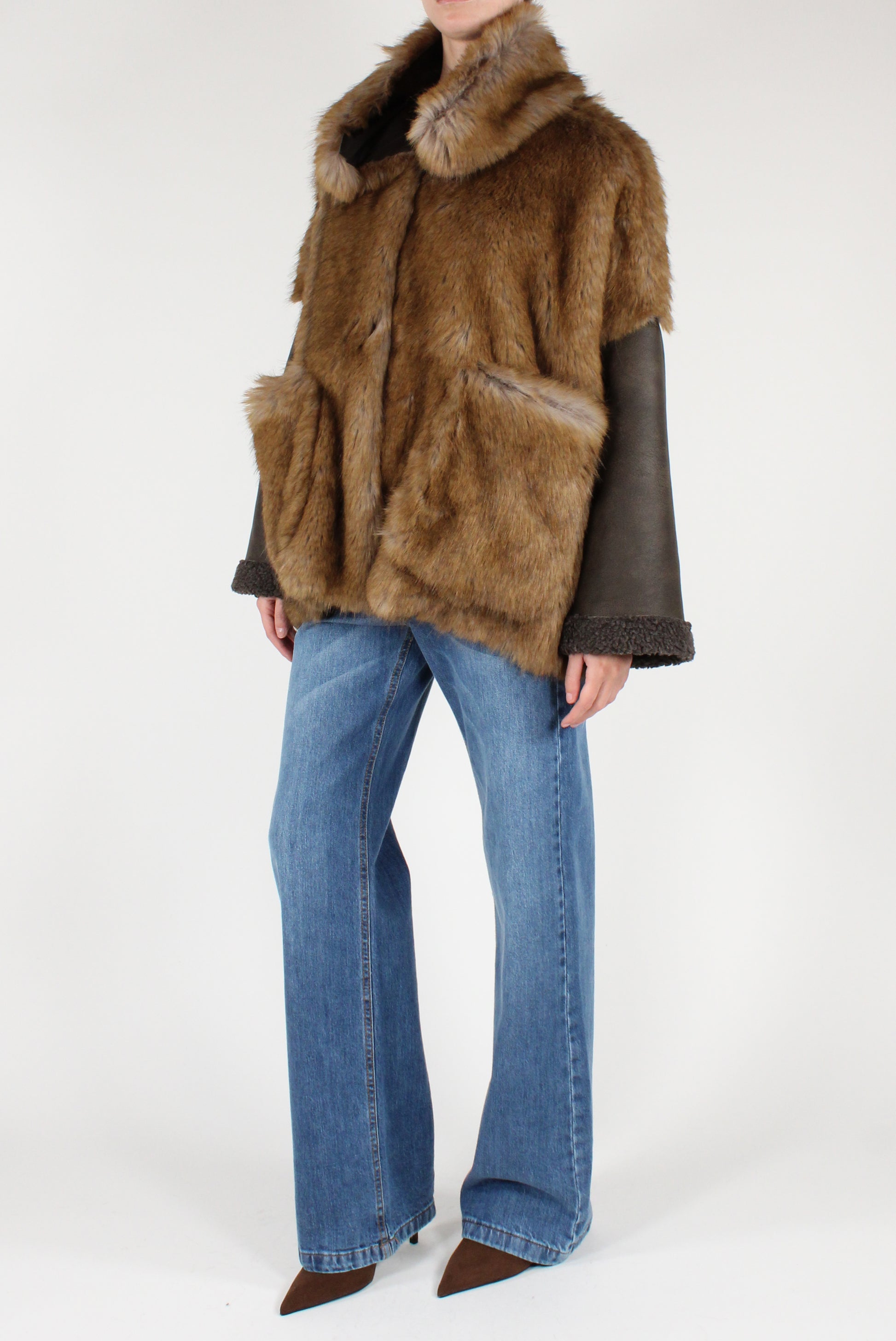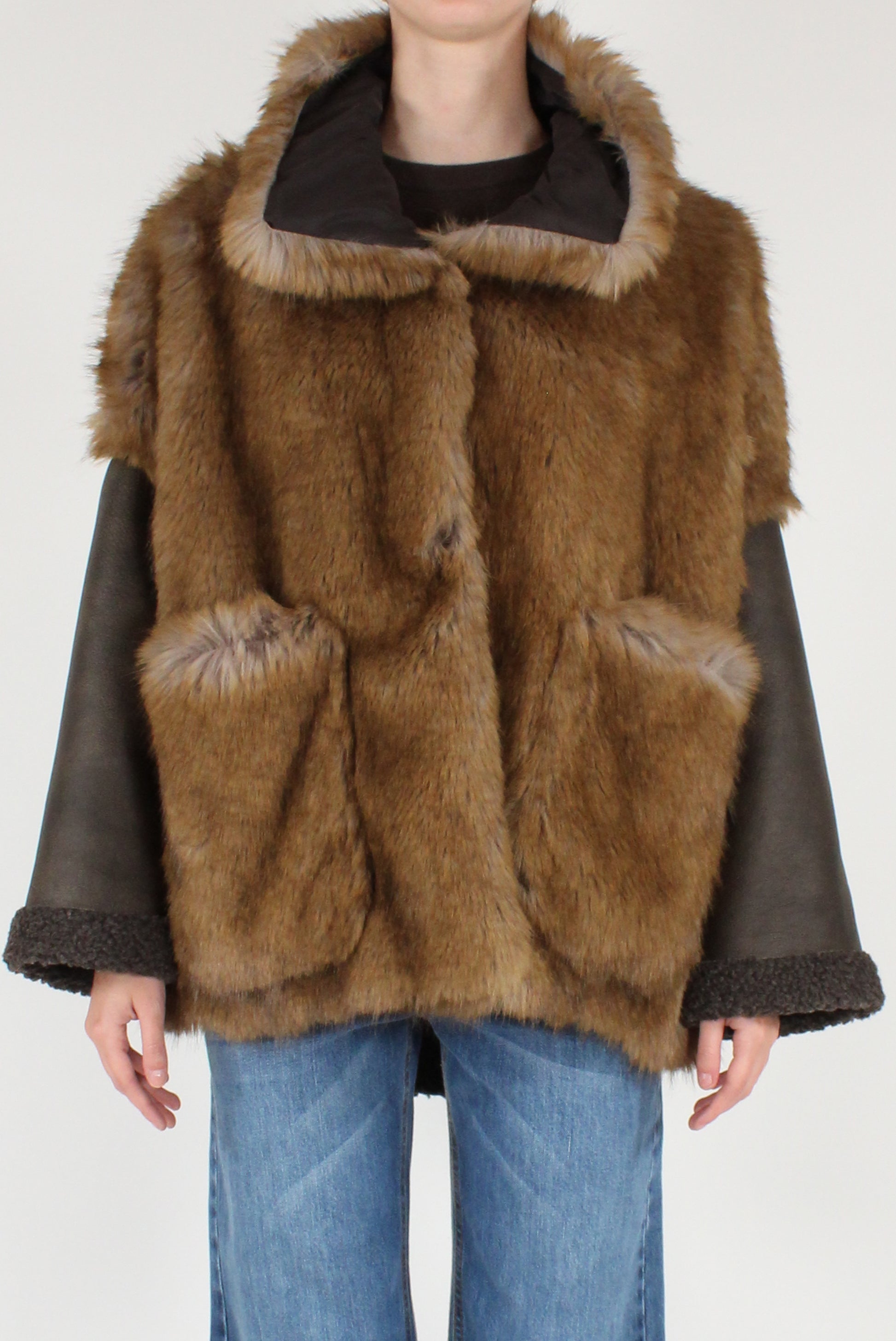 Eco montone con eco pelliccia sulla parte anteriore. Monopetto, a collo alto, con ampie tasche applicate, monopetto. Vestibilità over, completamente foderato.