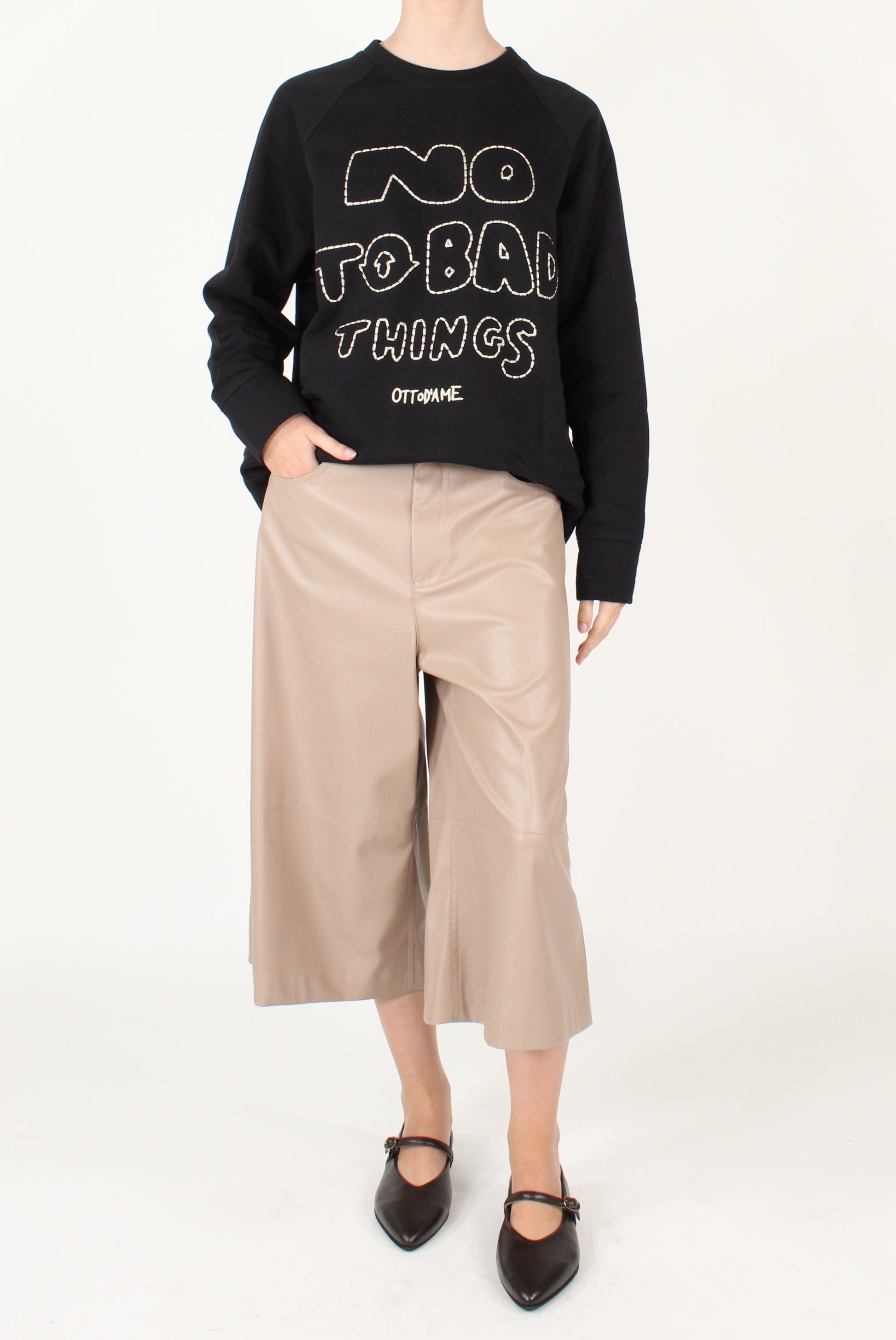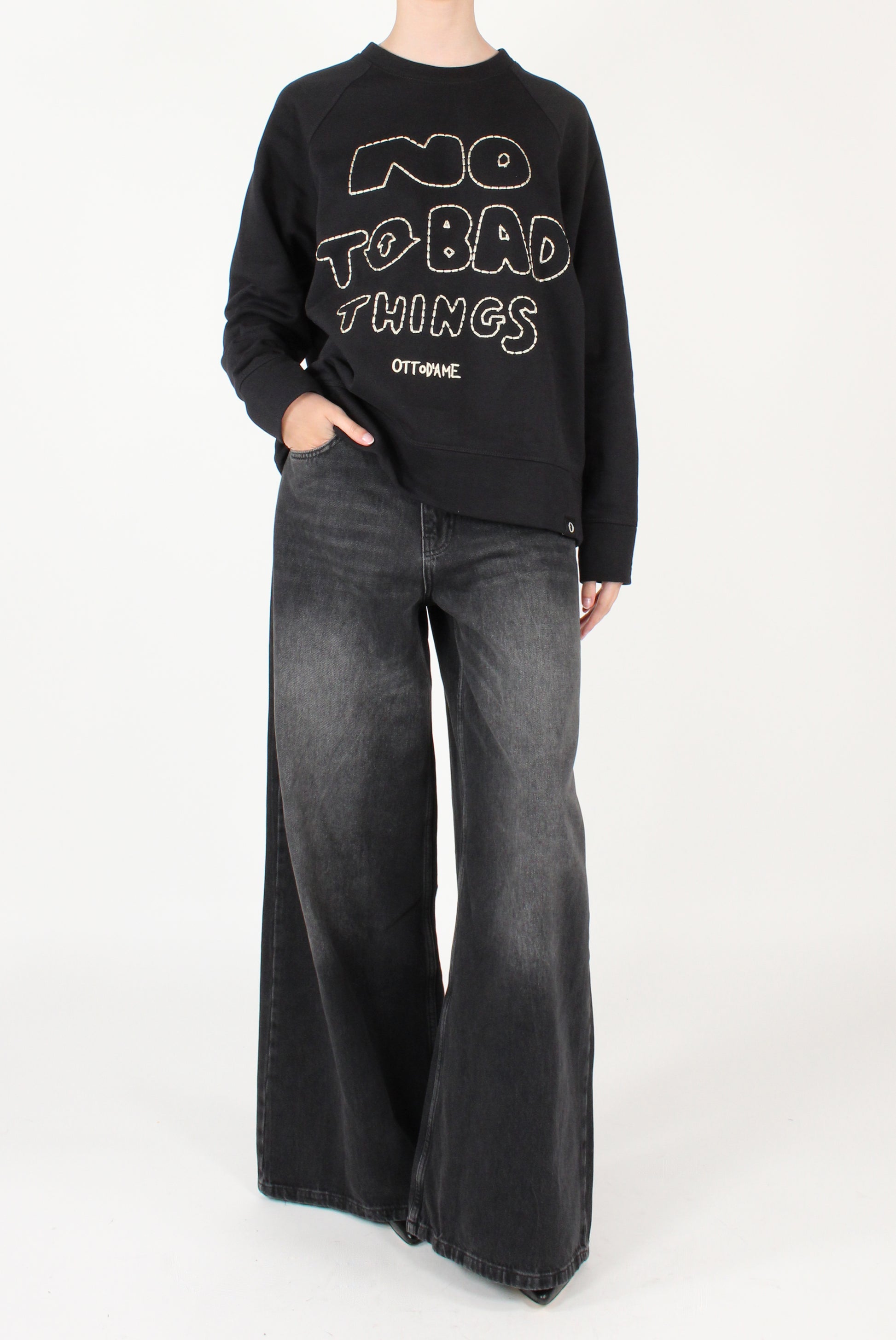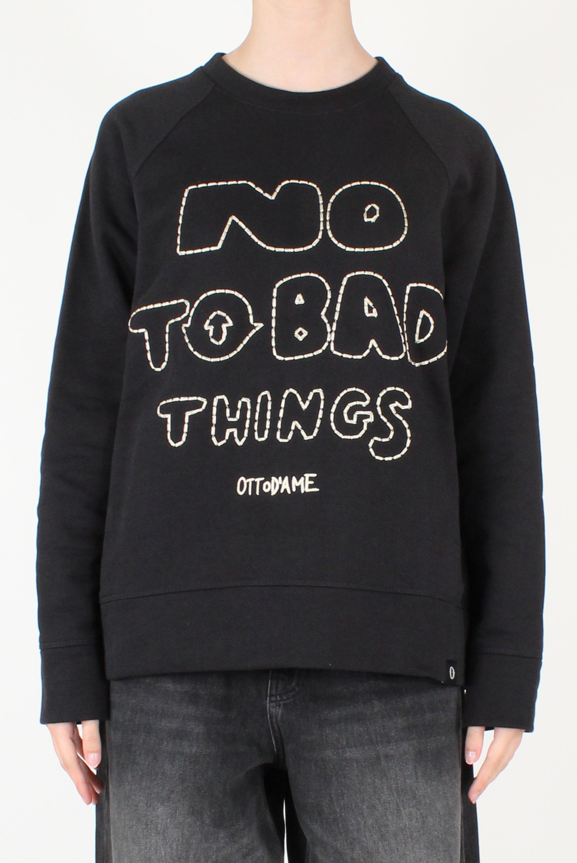 Felpa over con scritta ricamata: "No to bad things". Girocollo a maniche lunghe, in cotone.