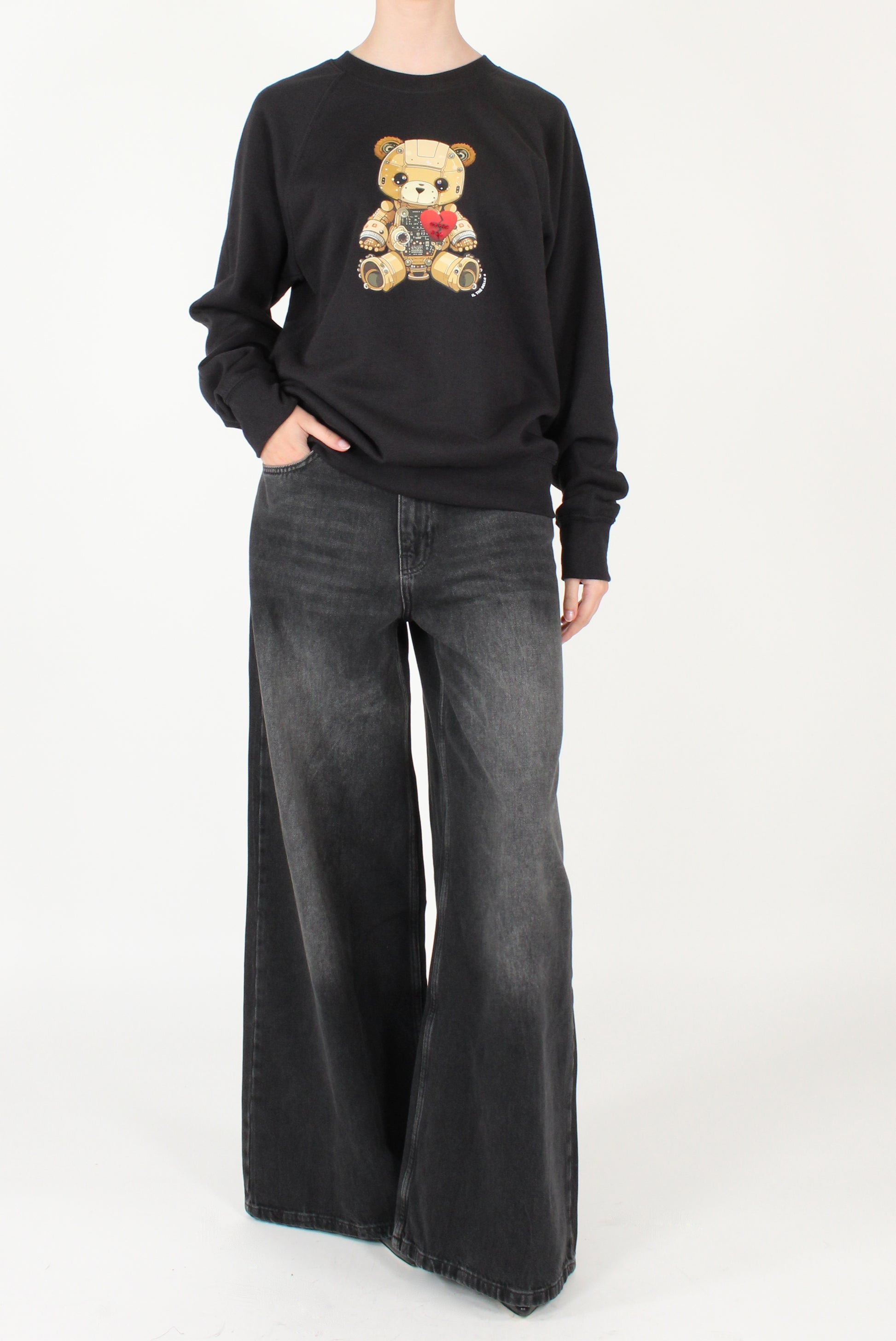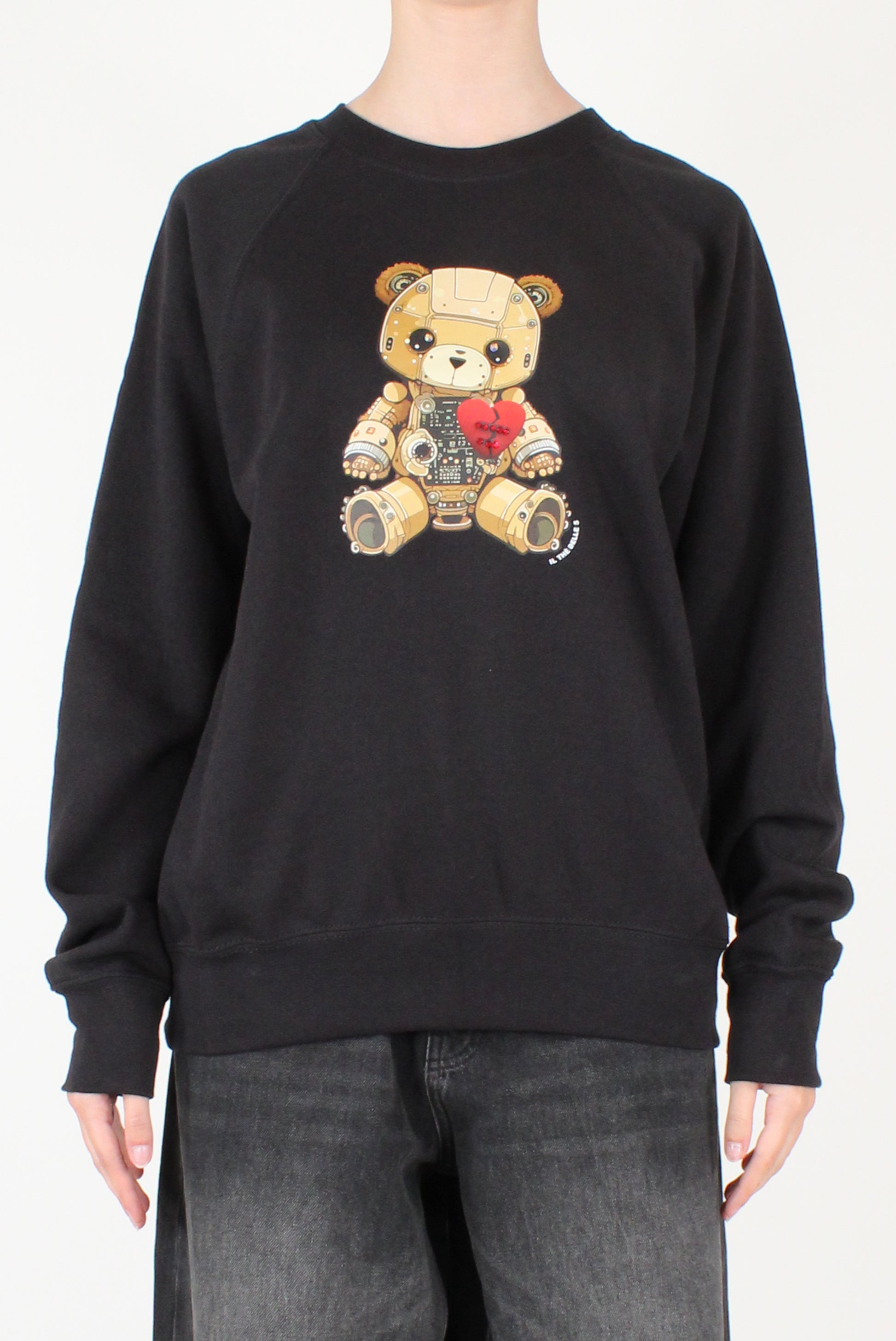 Felpa over stampa orsetto robot. Girocollo a maniche lunghe, dettaglio strass applicati.