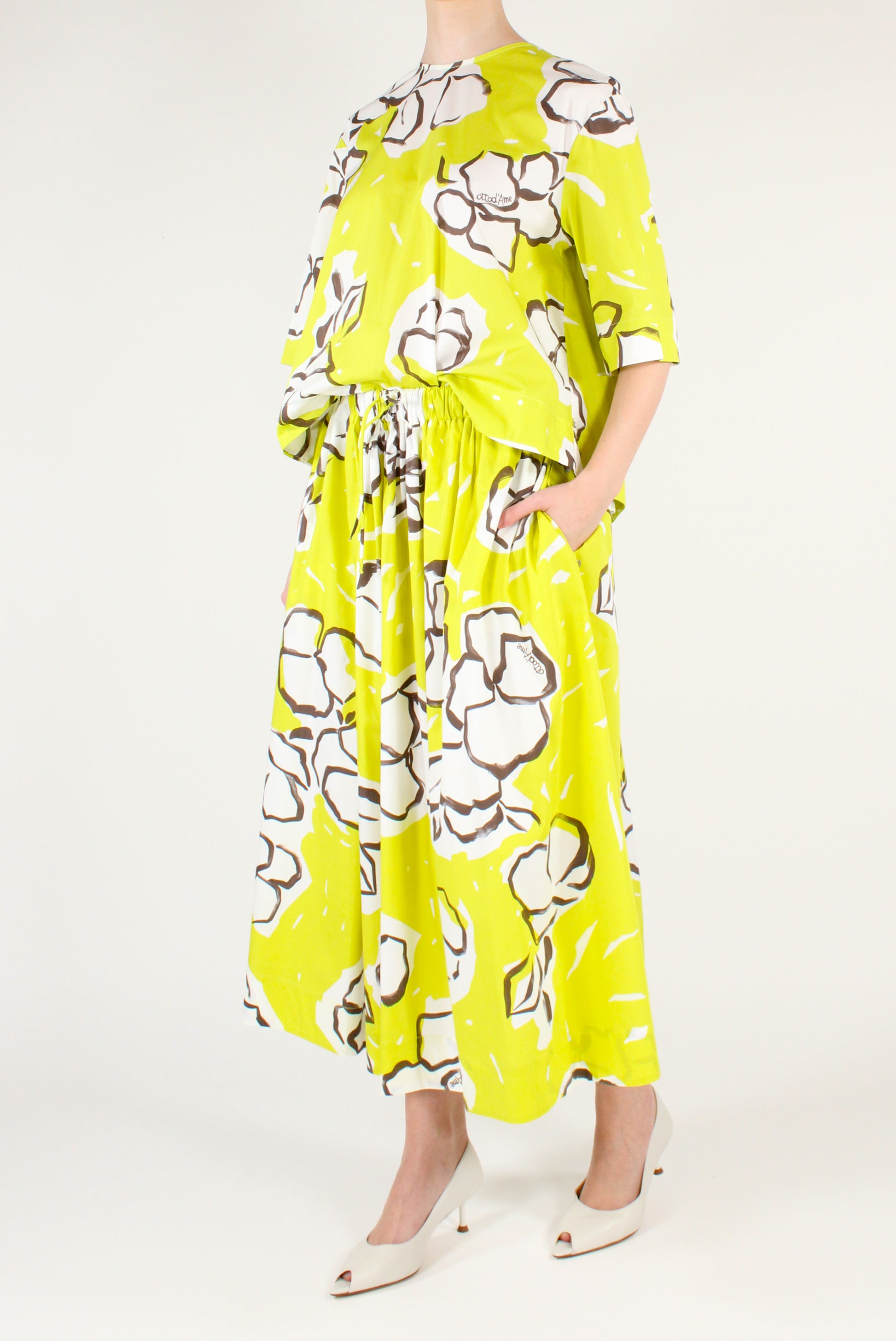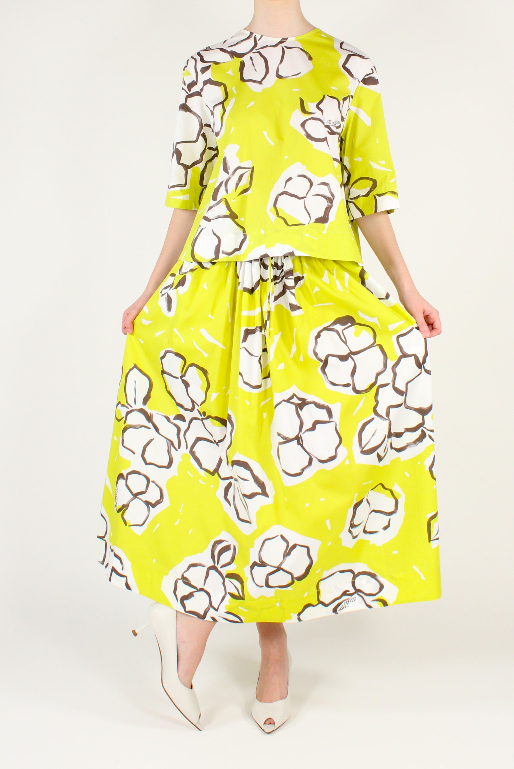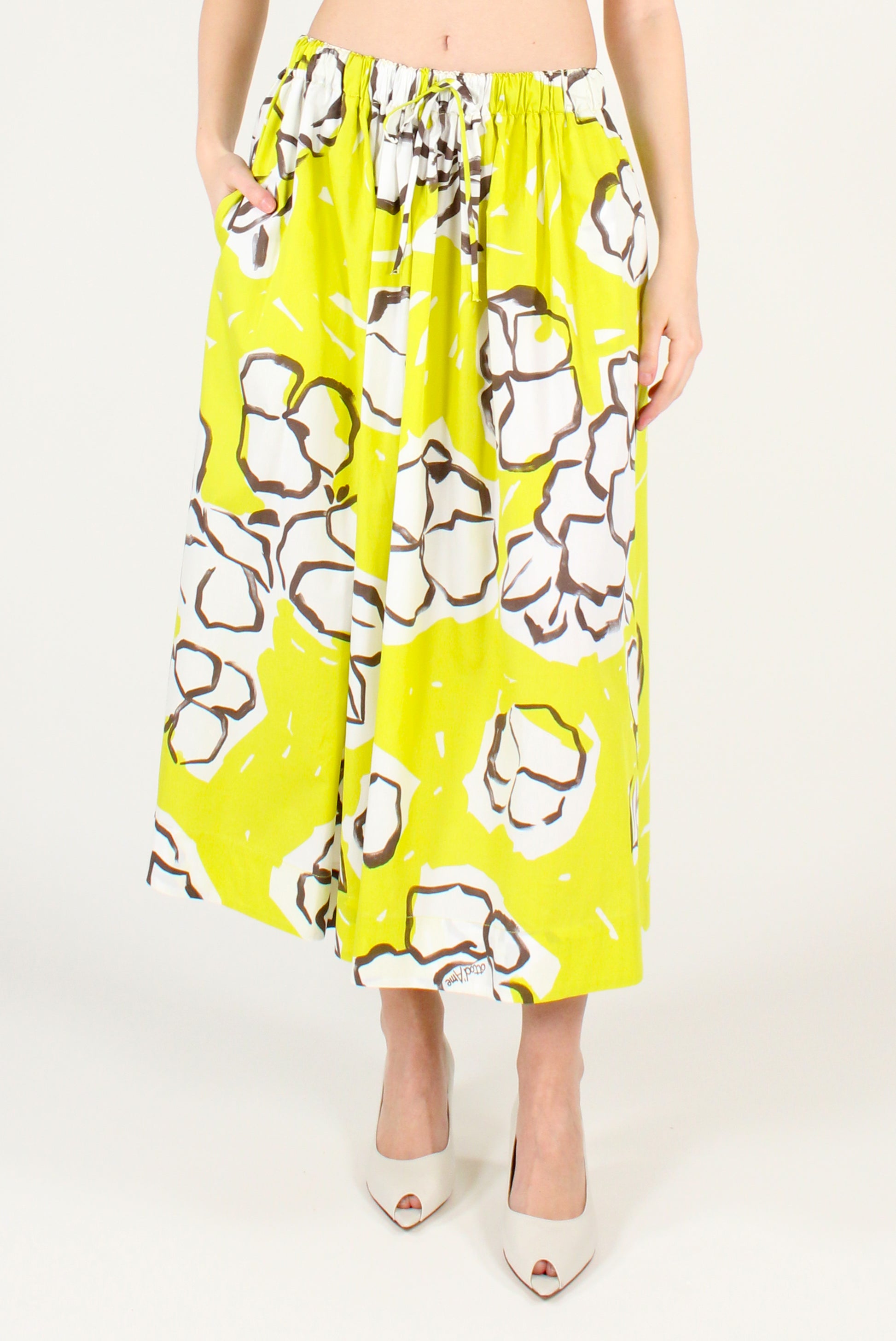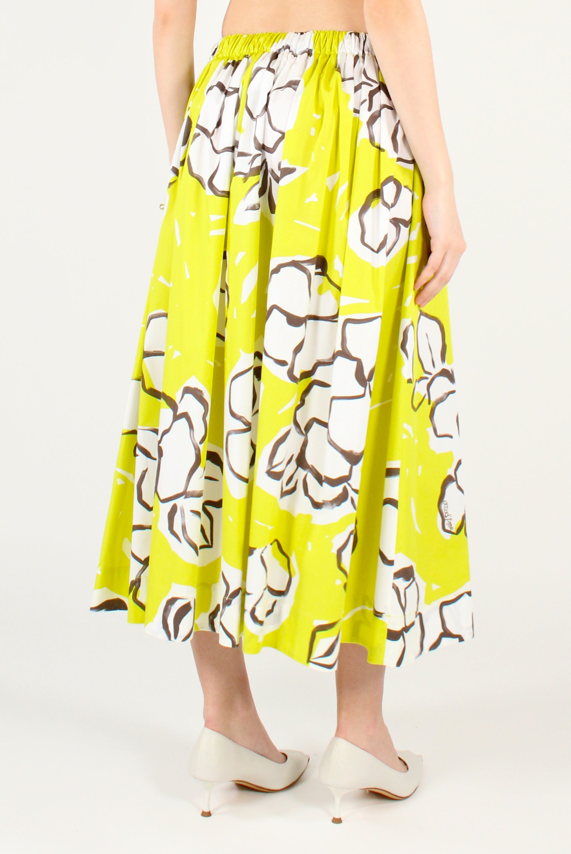 Gonna midi da donna in cotone con fantasia floreale. Modello con tasche laterali, coulisse ed elastico in vita per una vestibilità comoda e regolabile. Leggera e femminile, perfetta per look estivi freschi e contemporanei. Blusa coordinata disponibile.