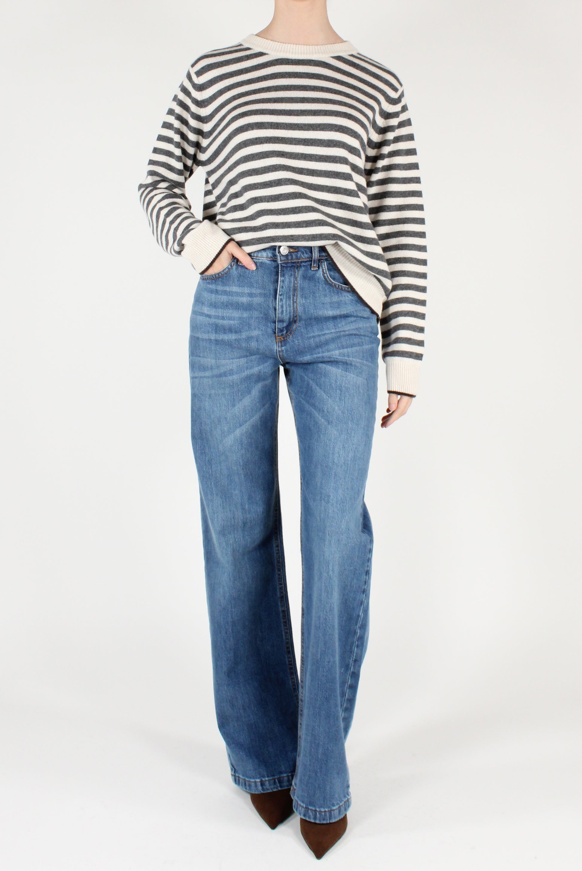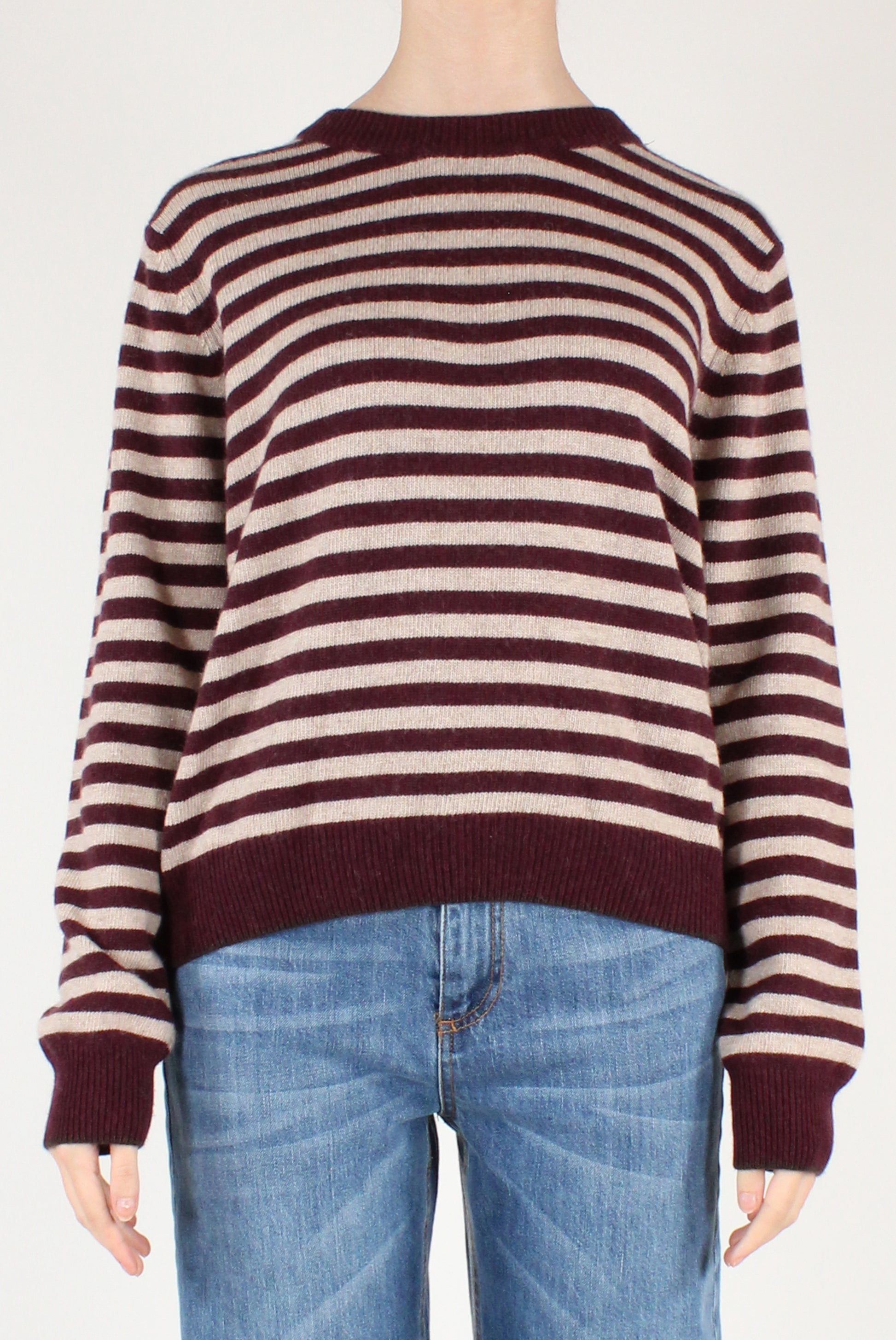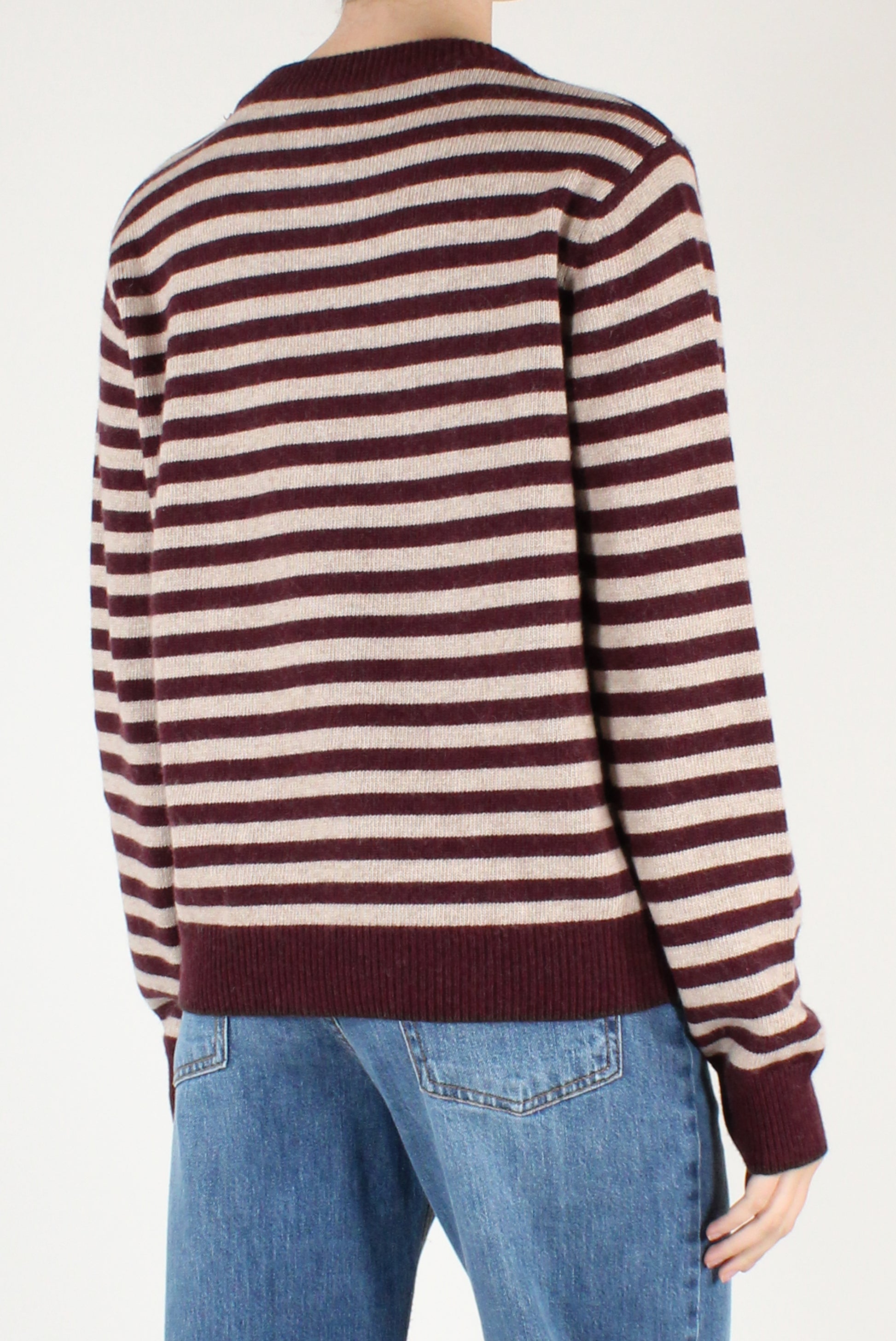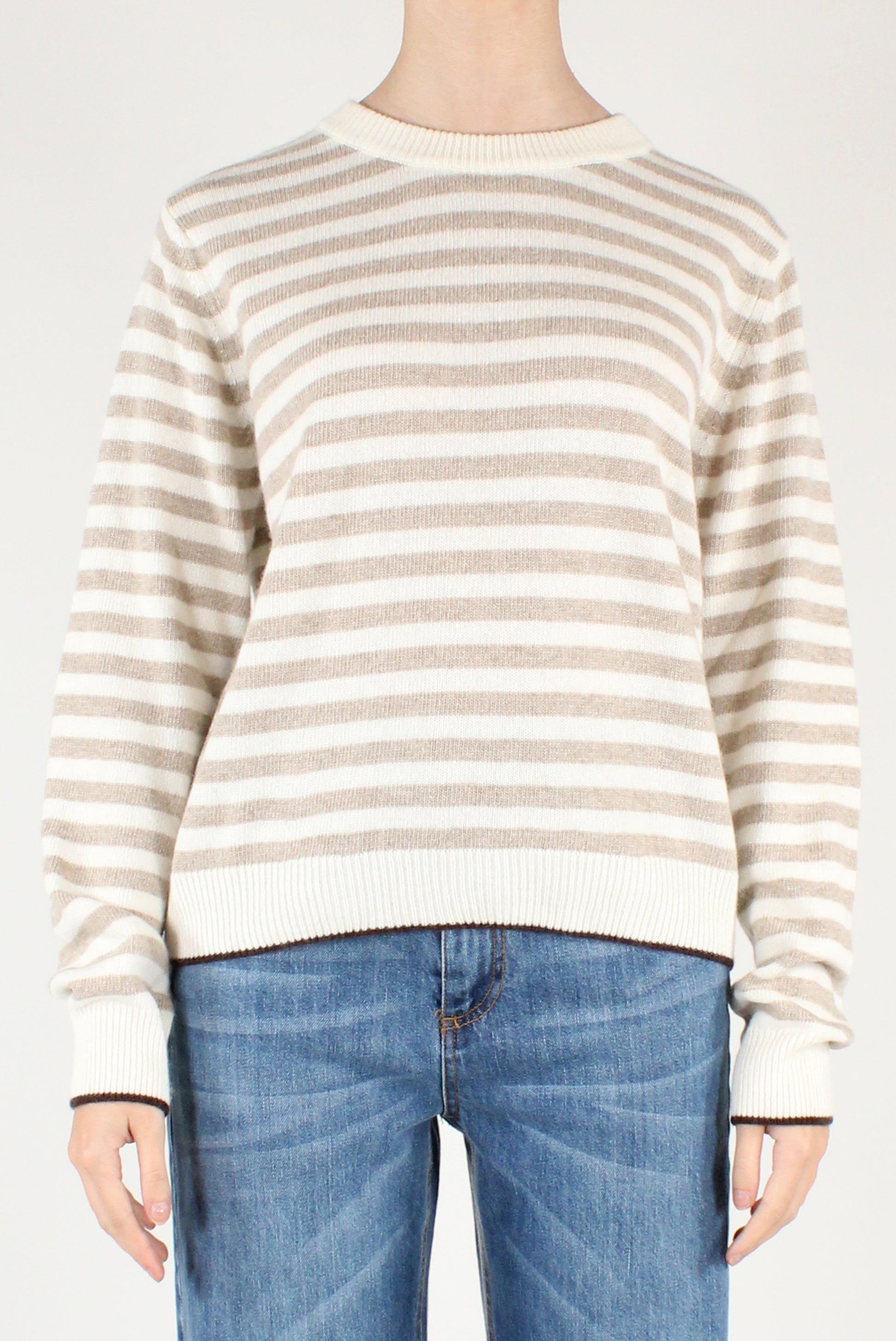 Maglione a righe profili a contrasto. Girocollo, a maniche lunghe, in misto lana. Taglio a scatoletta.