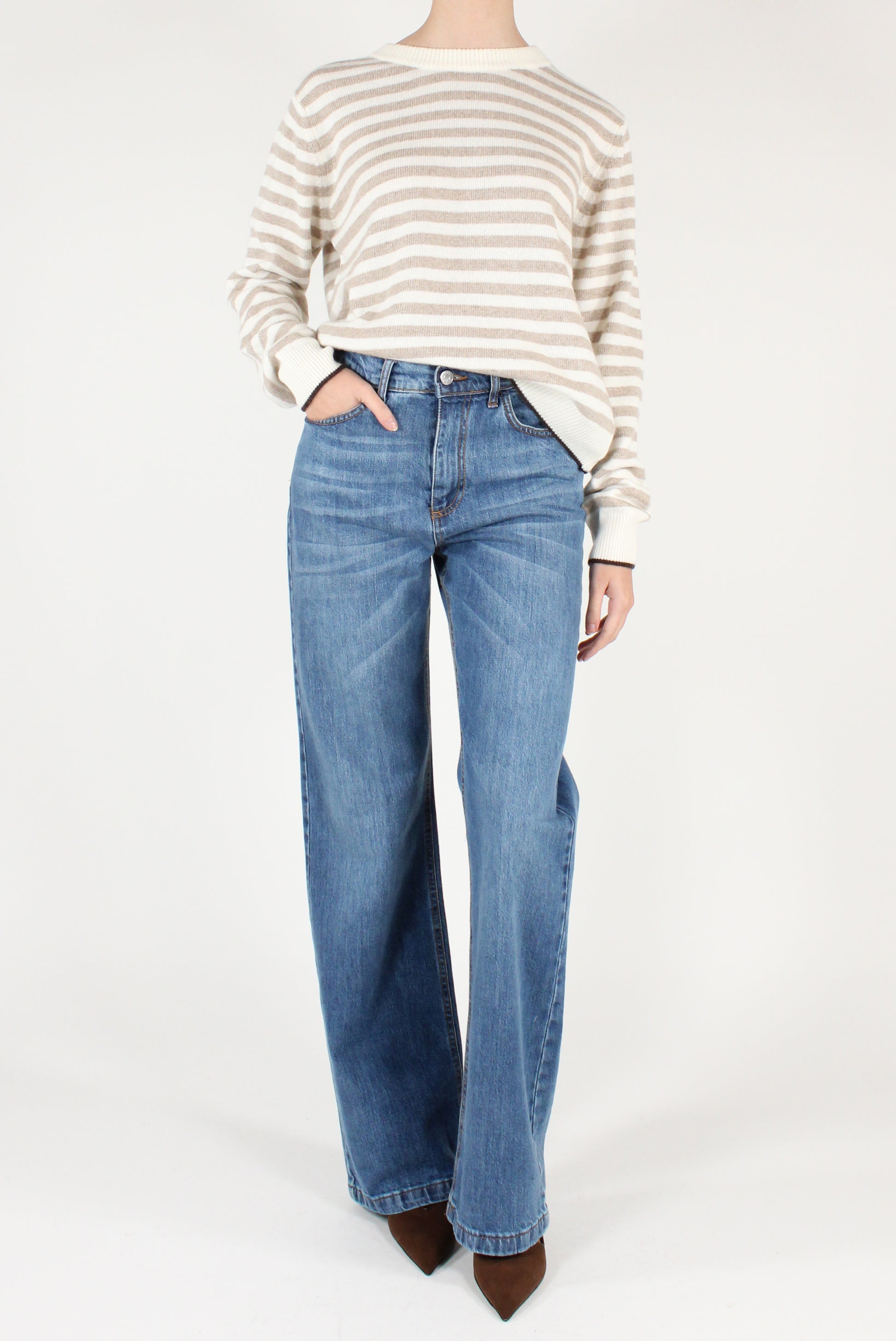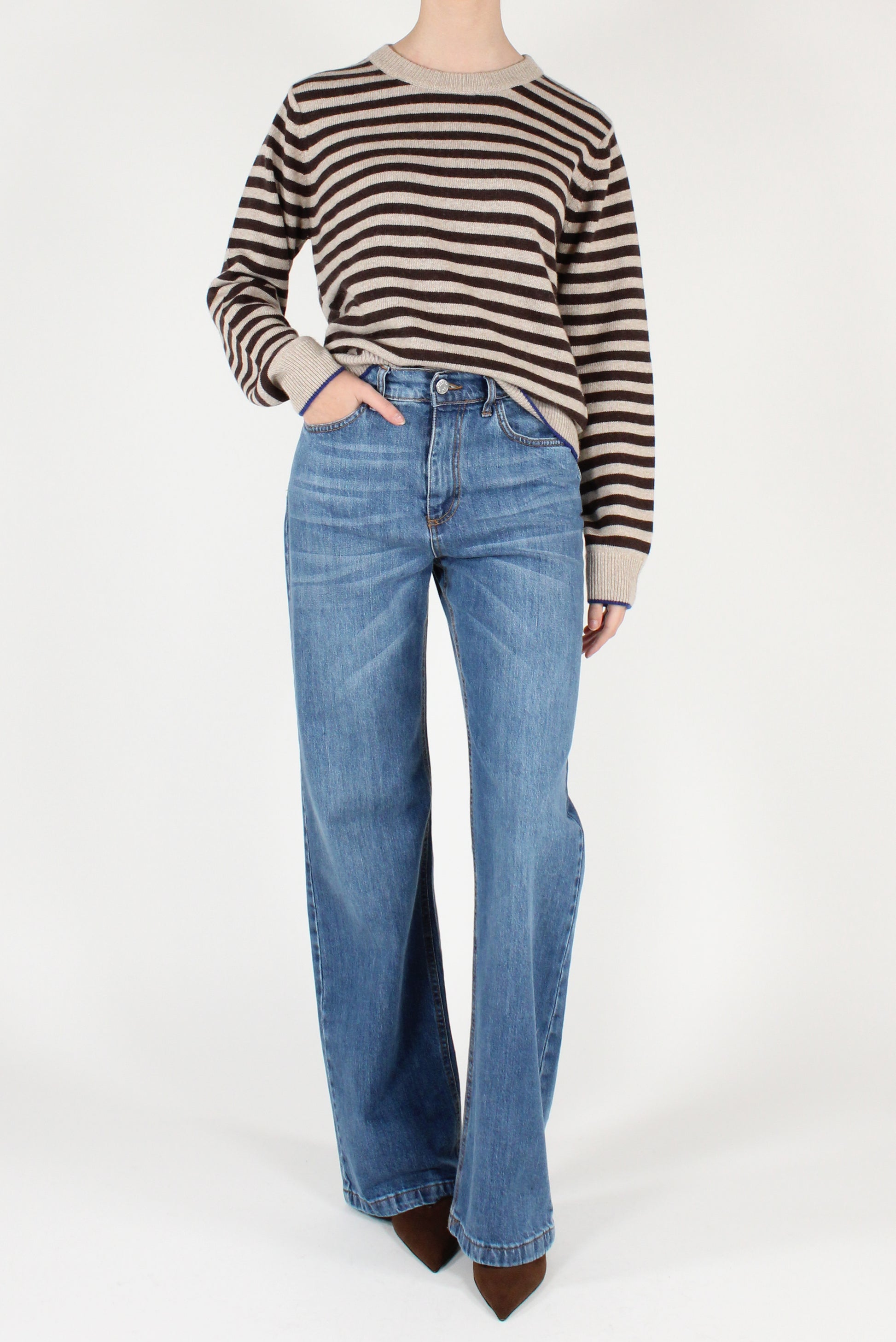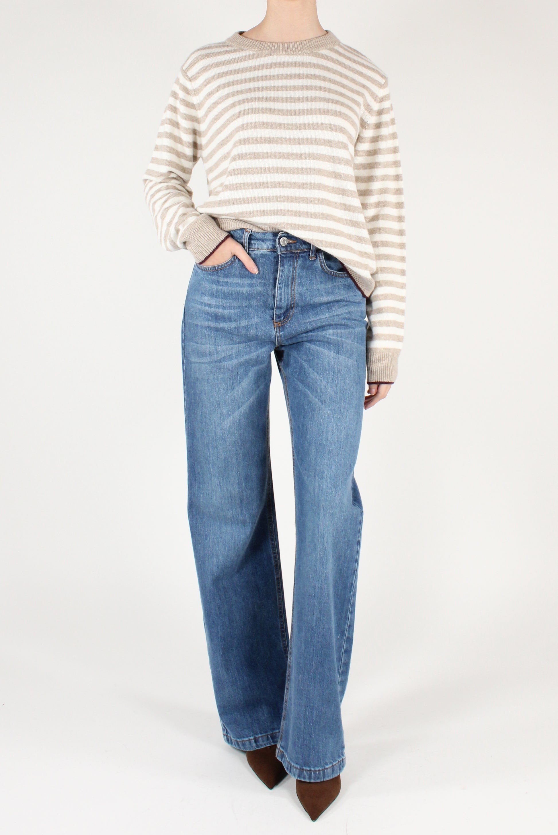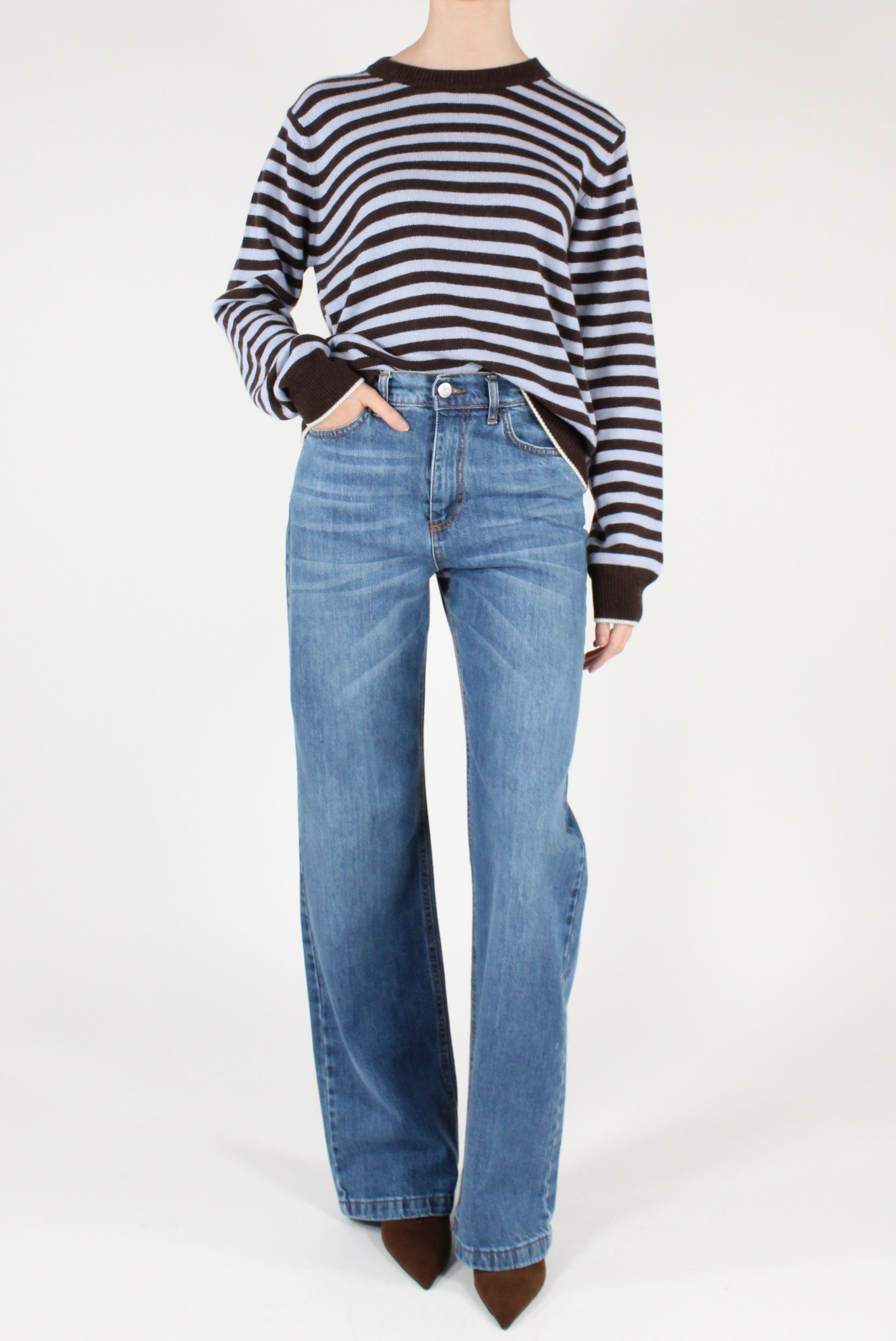 Maglione a righe profili a contrasto. Girocollo, a maniche lunghe, in misto lana. Taglio a scatoletta.