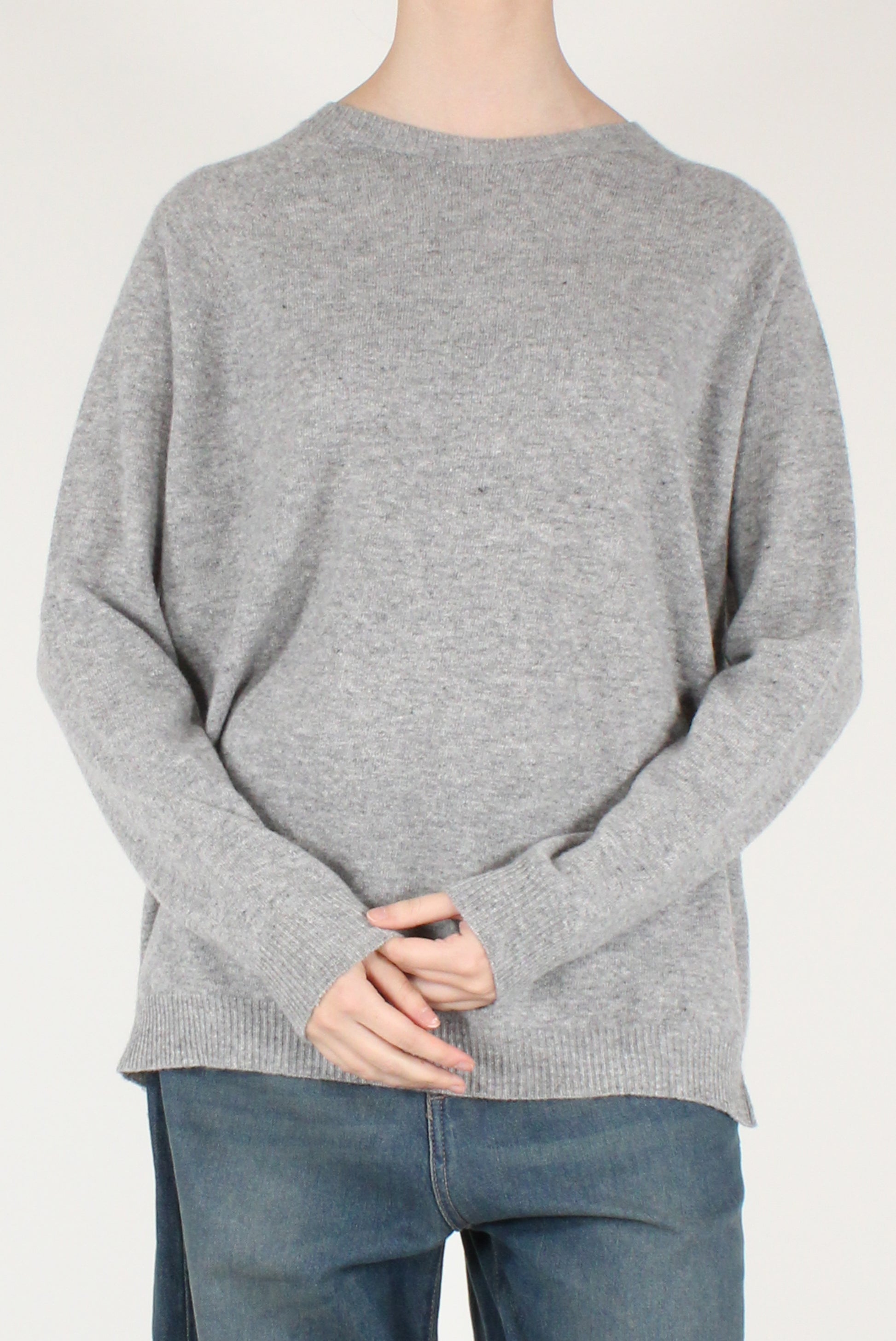 Maglione a scatoletta in pura lana. Girocollo, a maniche lunghe. Con spacchetti laterali.