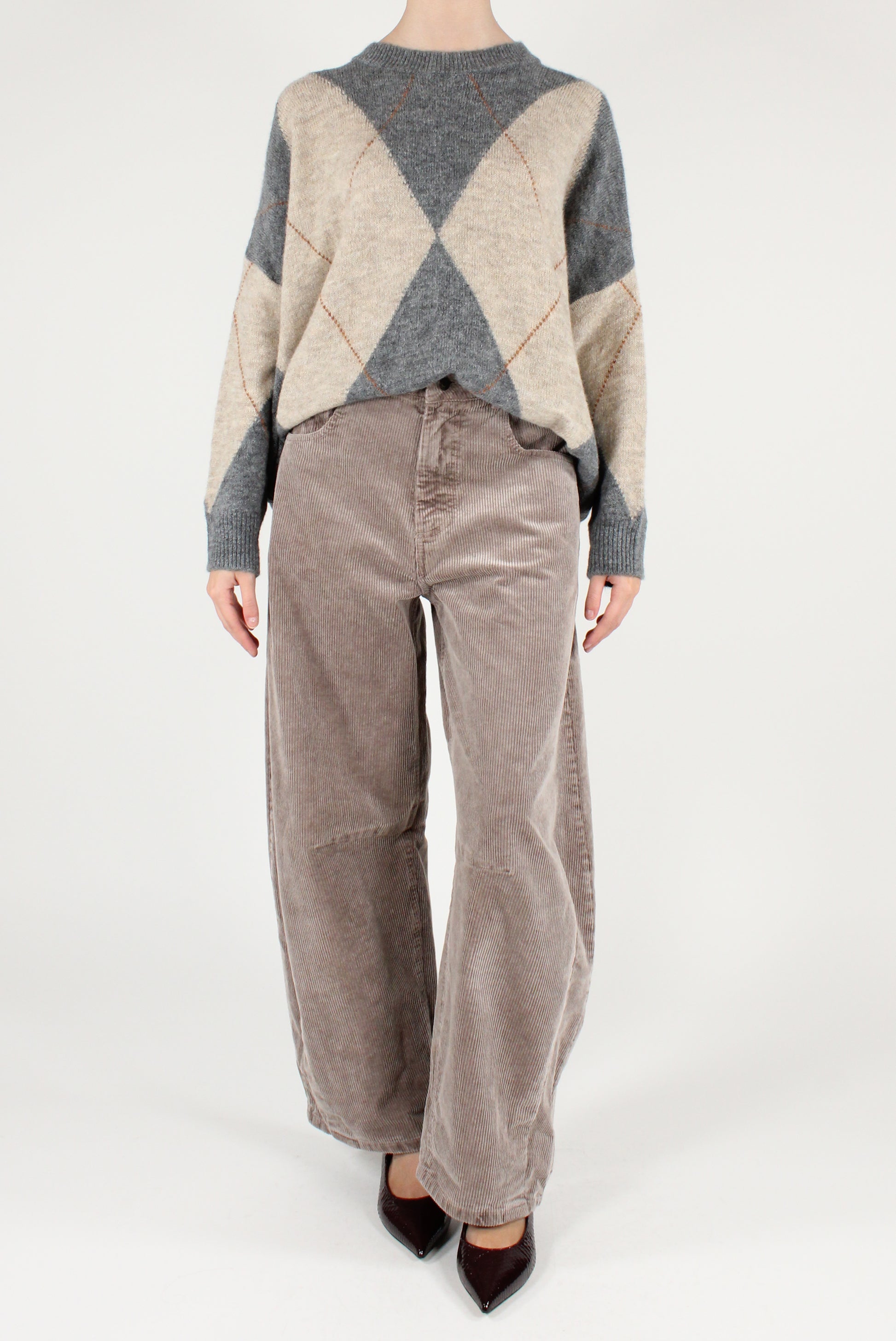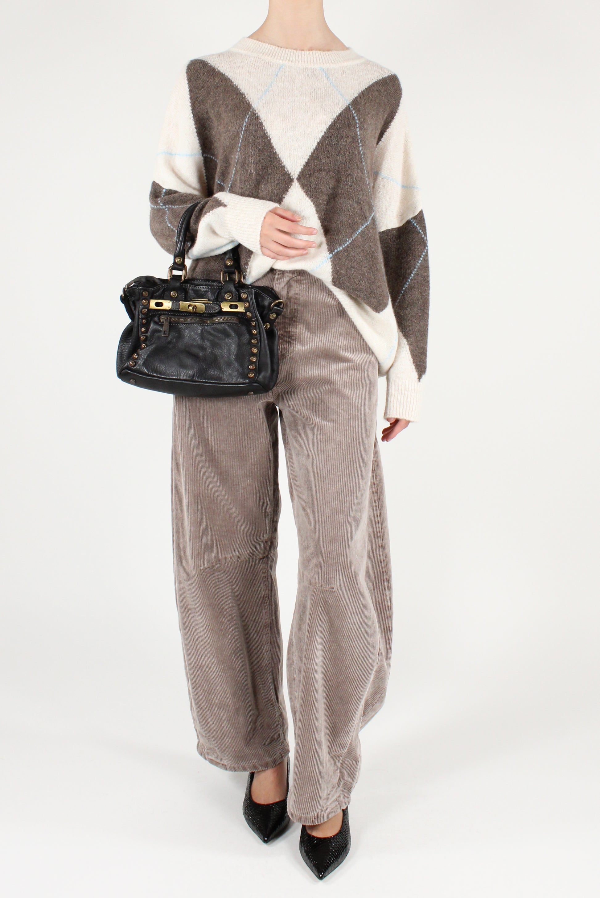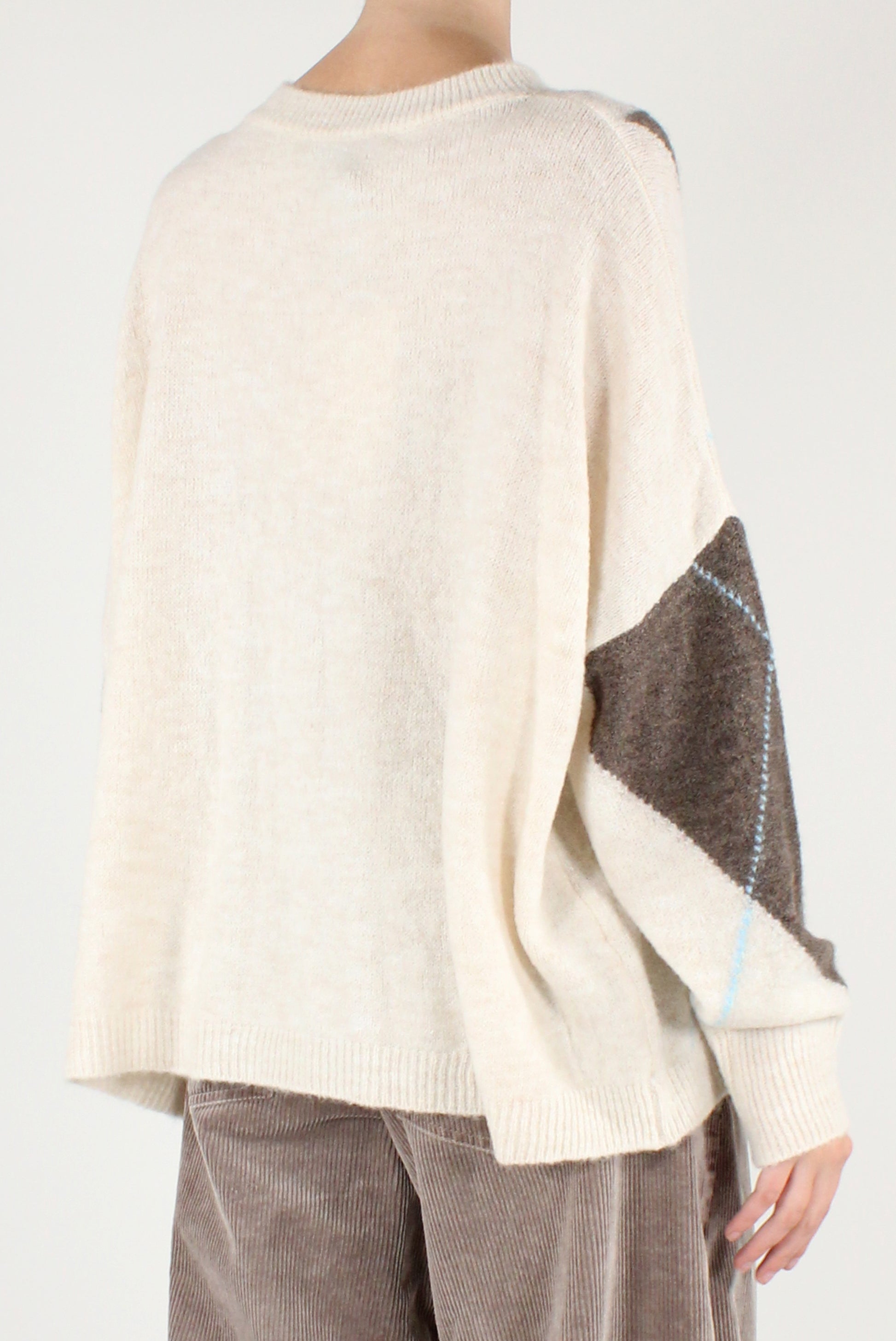 Maglione con rombi sul davanti colorati a contrasto. Girocollo, a maniche lunghe, vestibilità over.