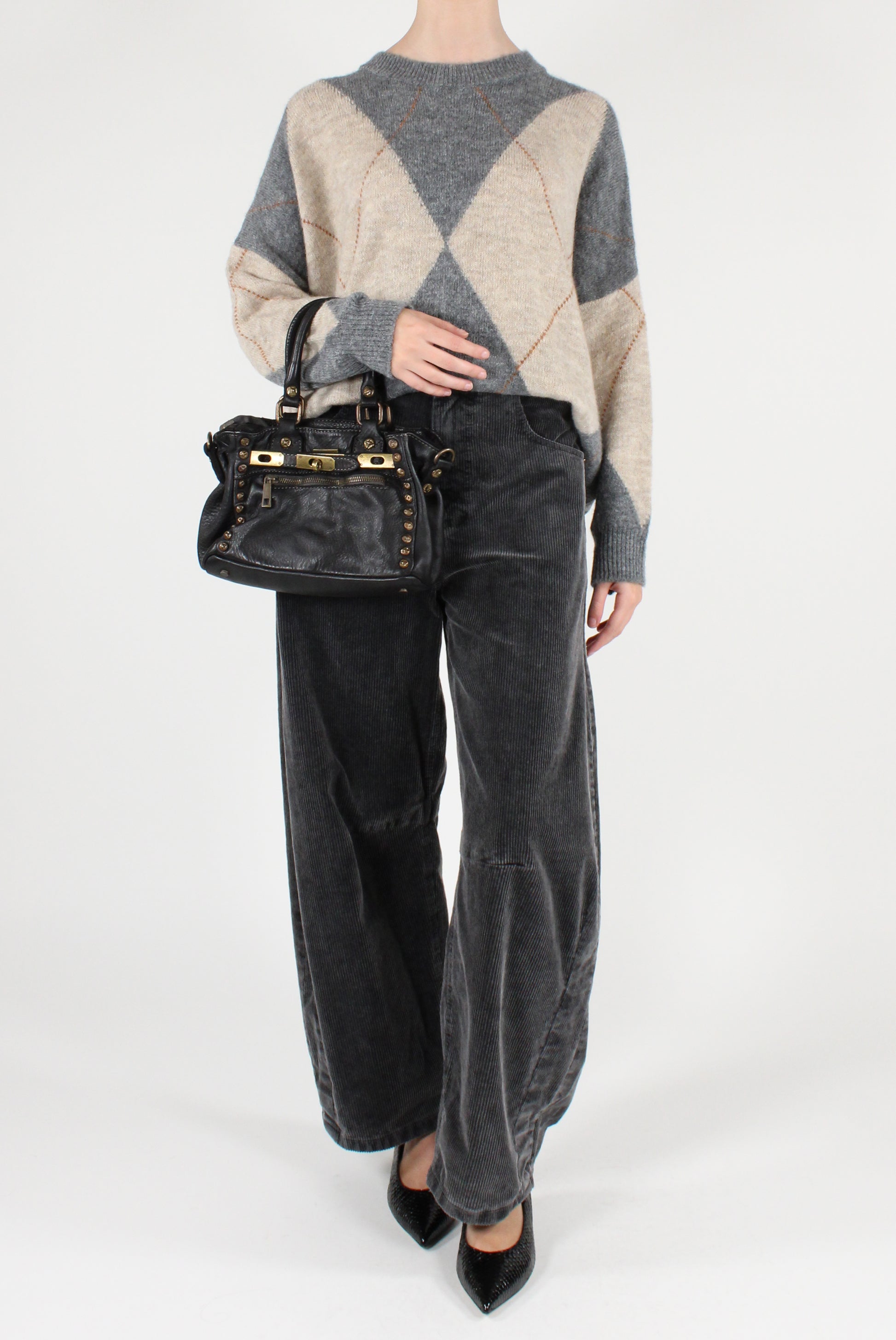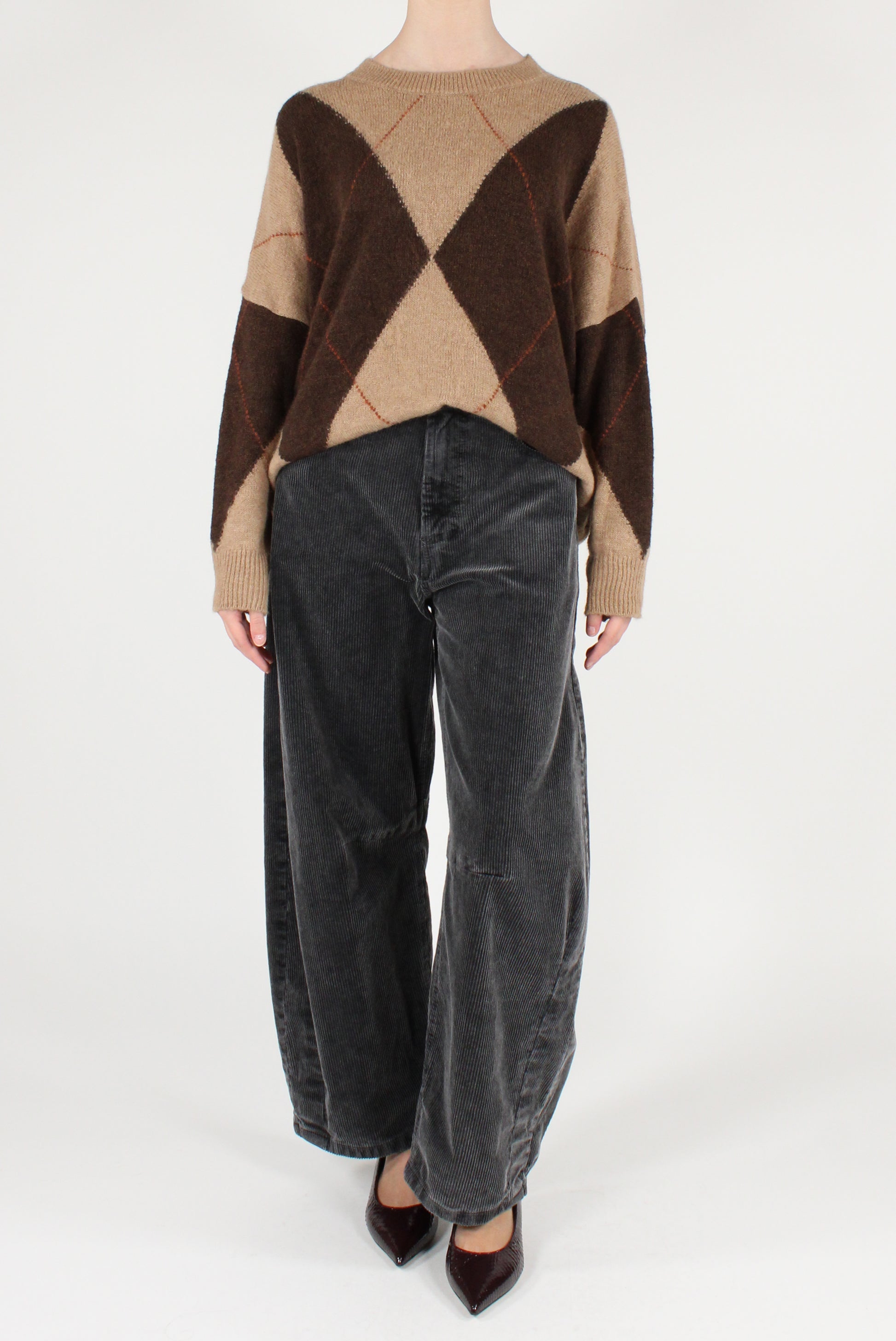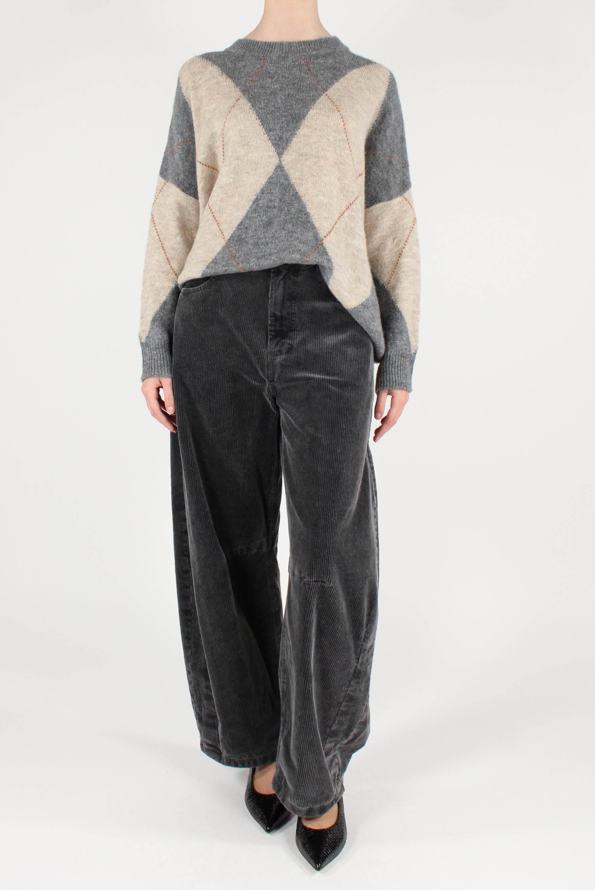 Maglione con rombi sul davanti colorati a contrasto. Girocollo, a maniche lunghe, vestibilità over.