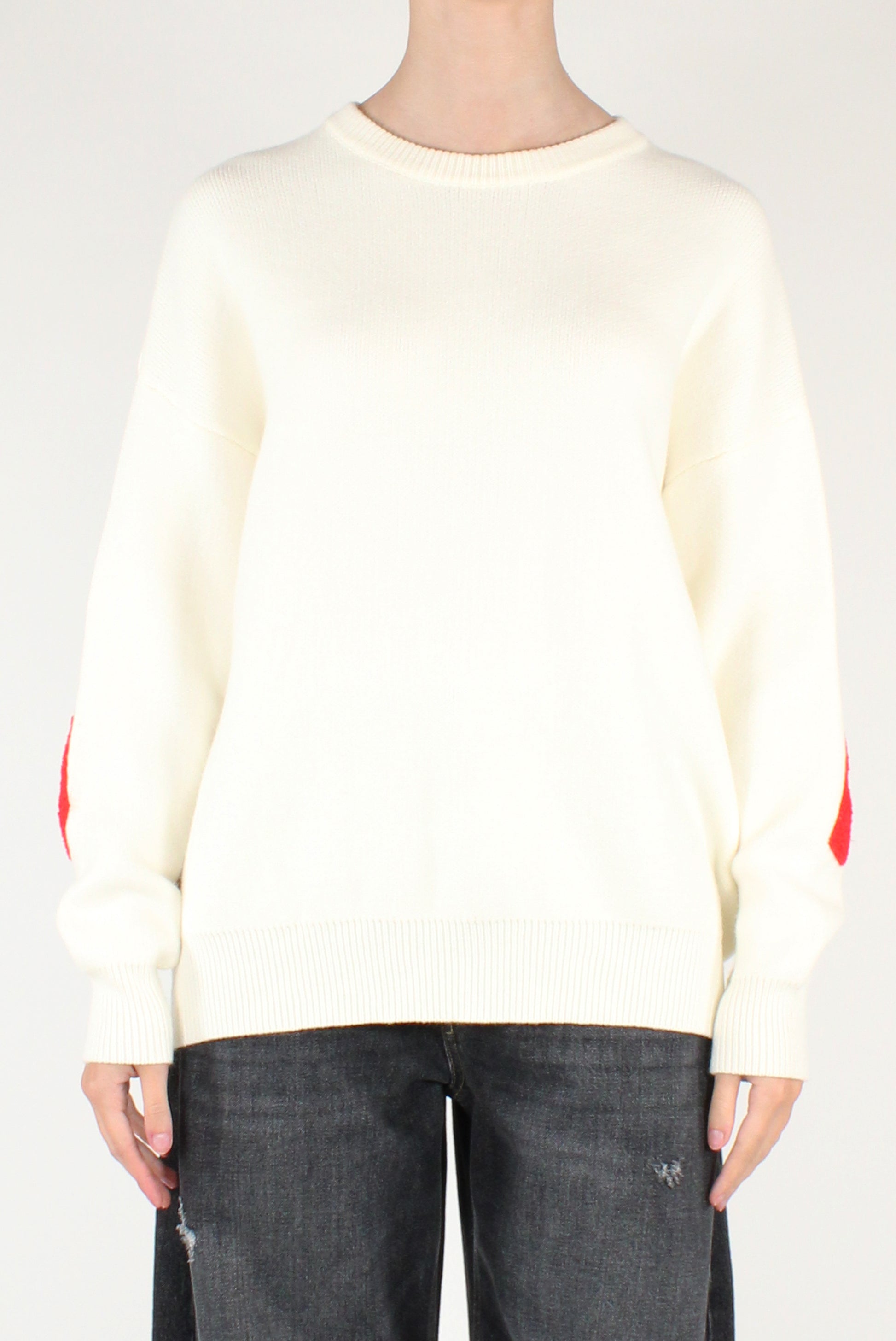 Maglione over con scritta "Forever" a grandi lettere applicate sul retro dalle maniche alle spalle. Girocollo a maniche lunghe, dettaglio profili a costine.