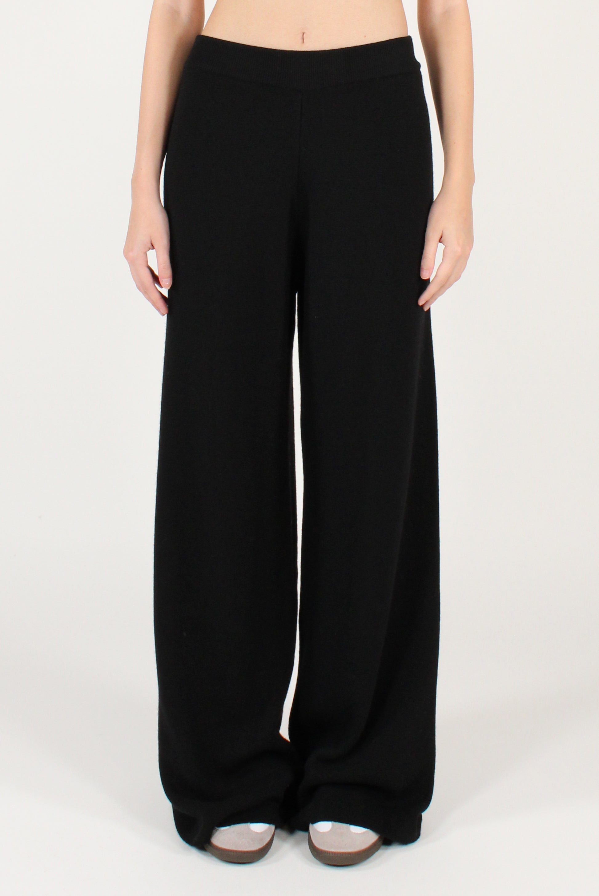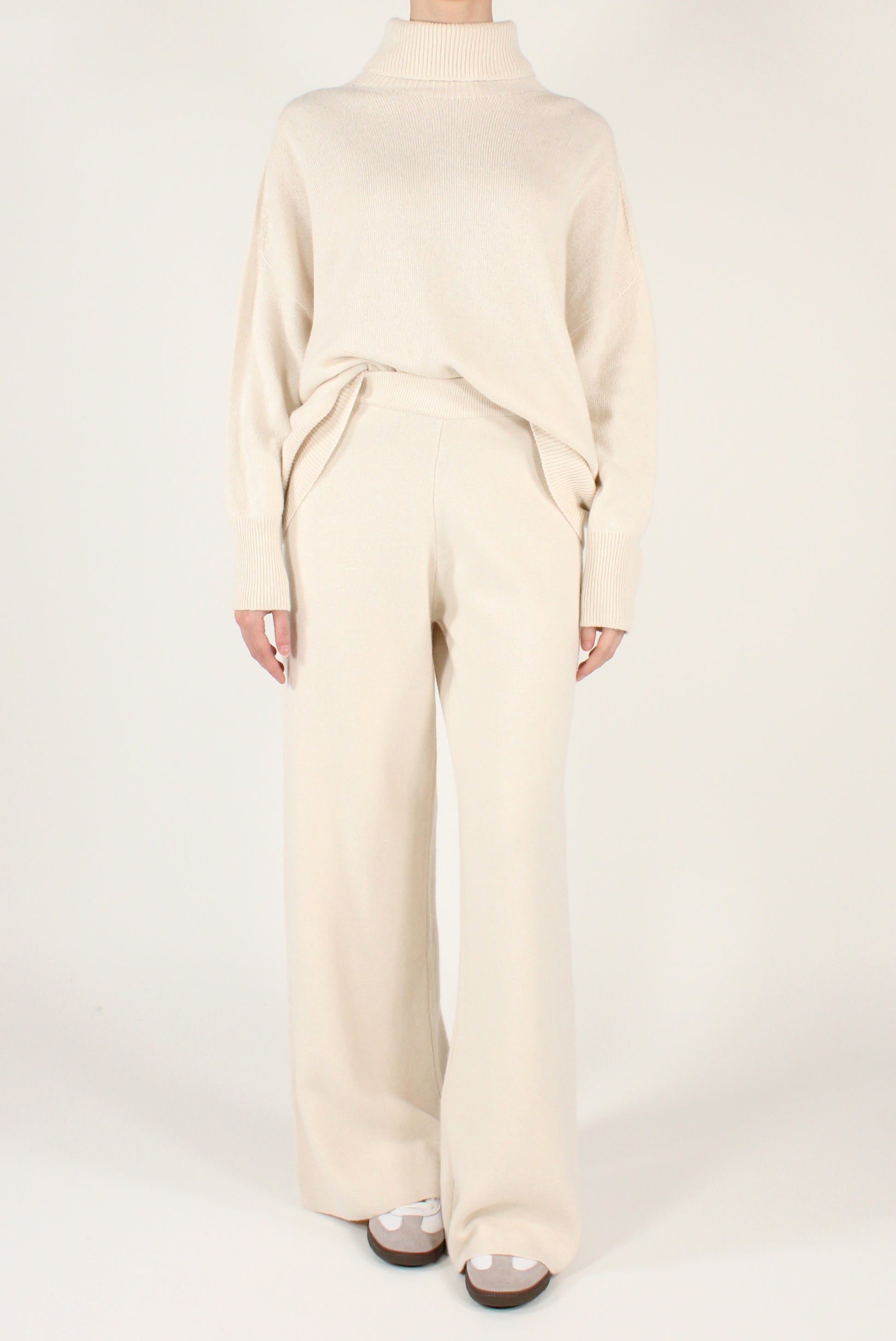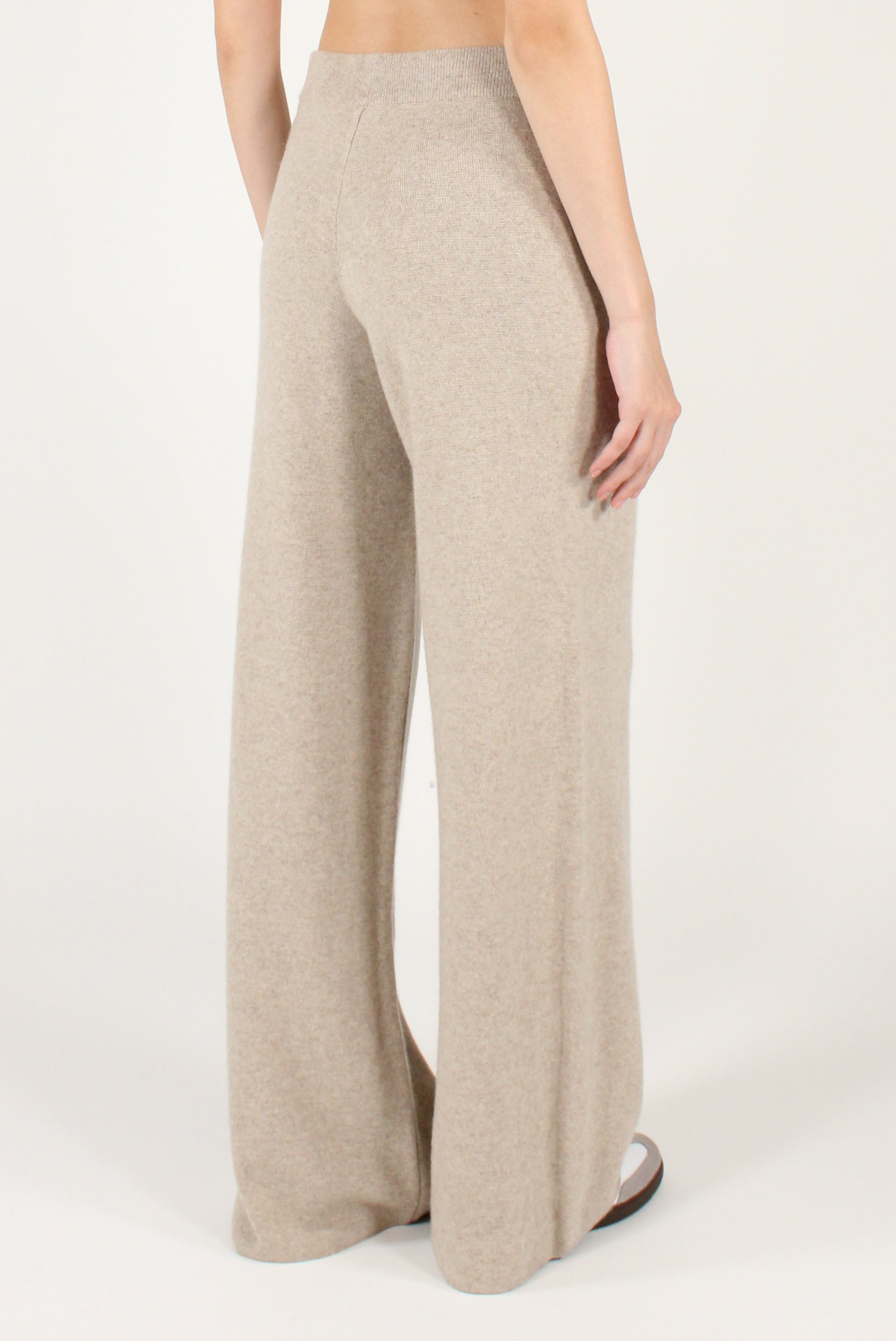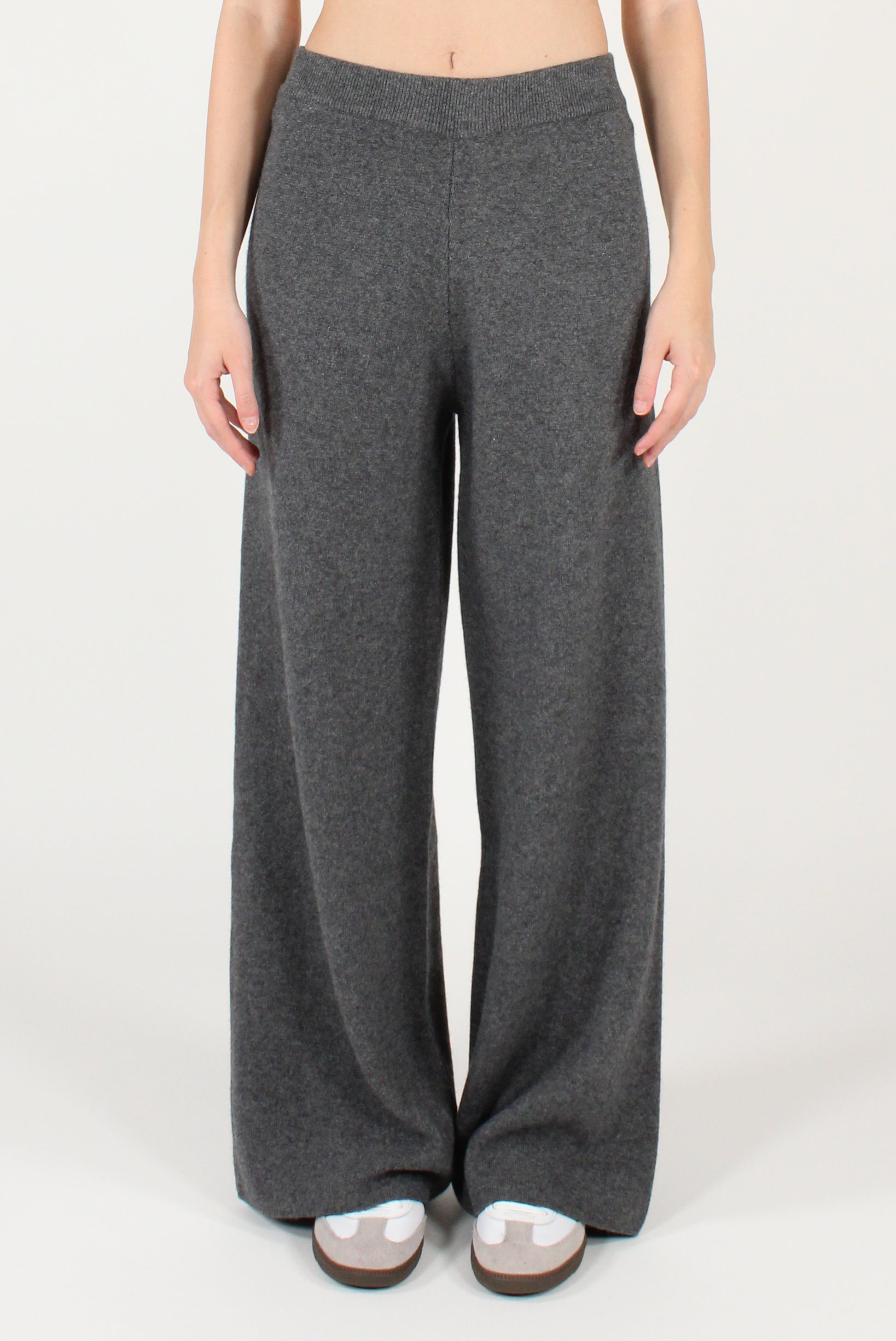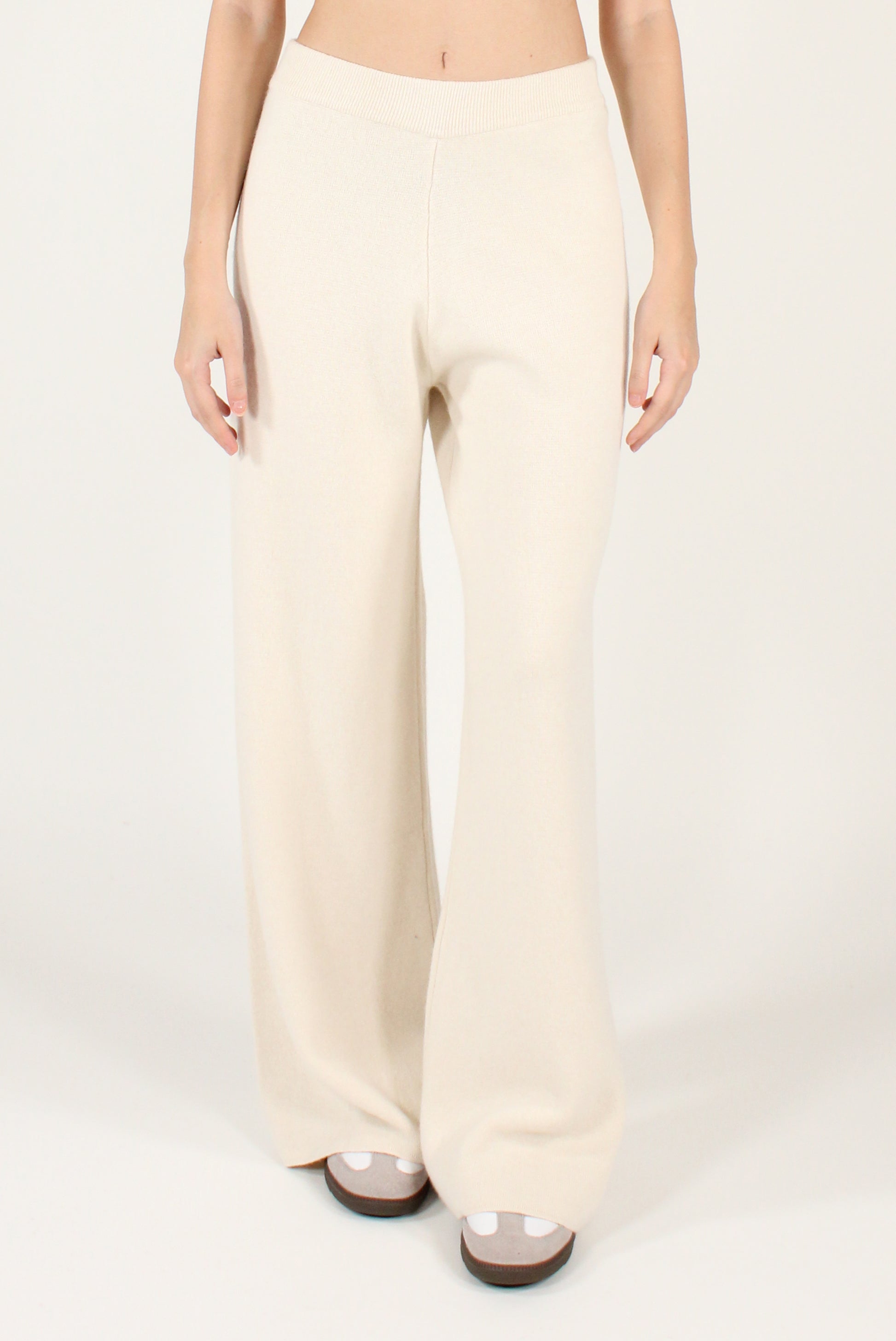 Pantaloni a palazzo in maglia misto lana. Con elastico in vita con dettaglio costine. Maglioni coordinati disponibili.