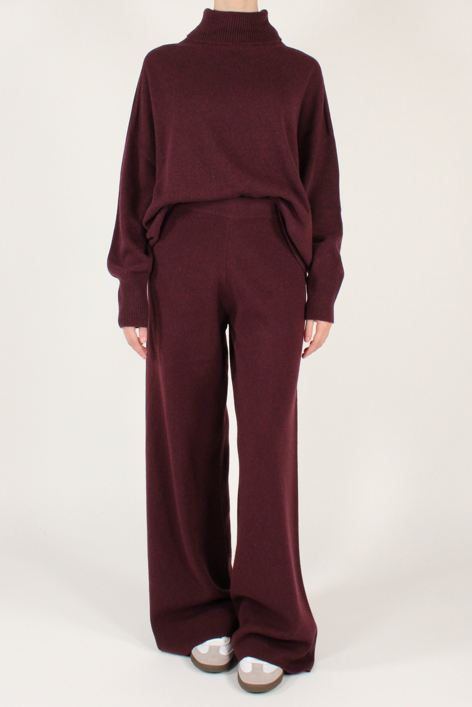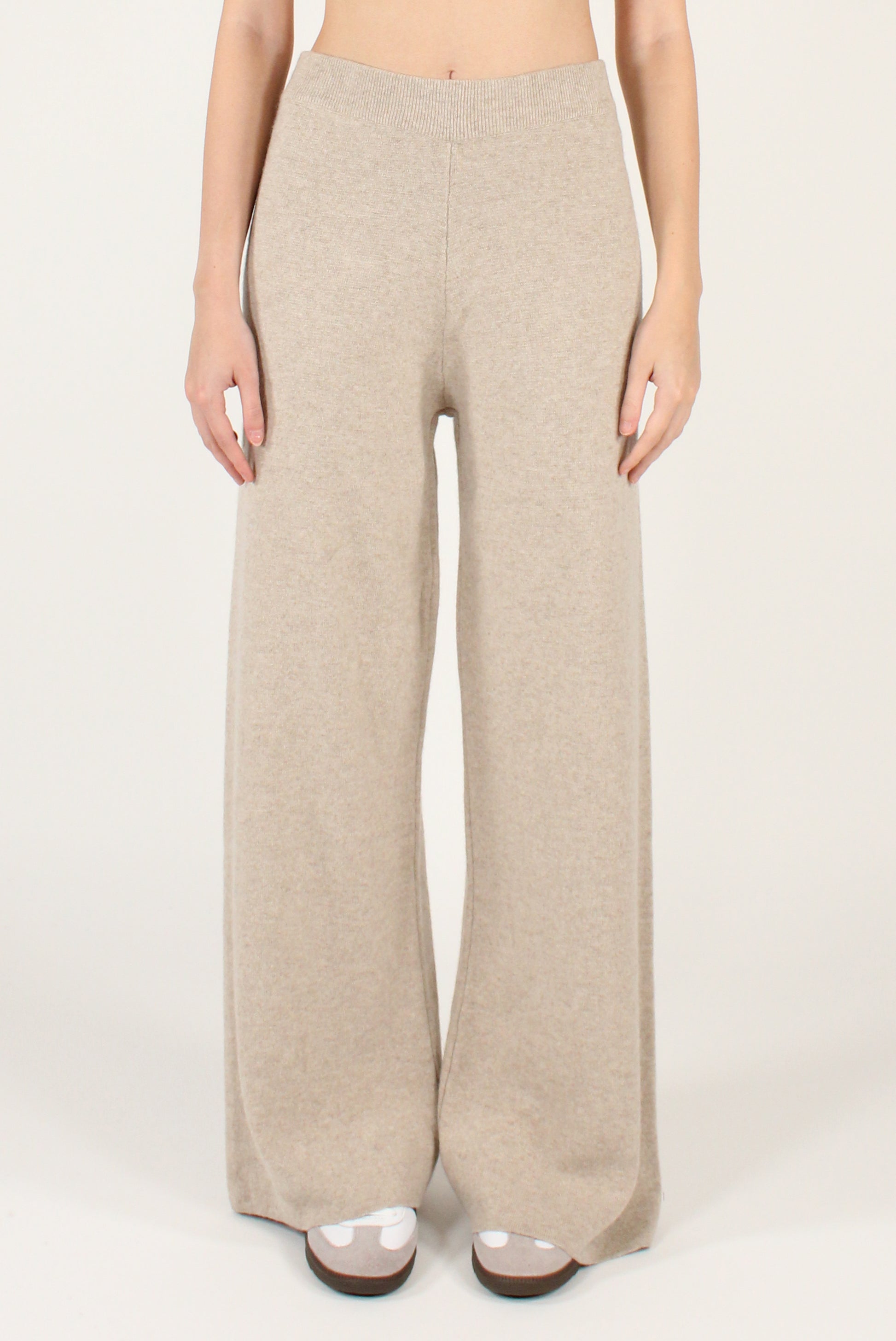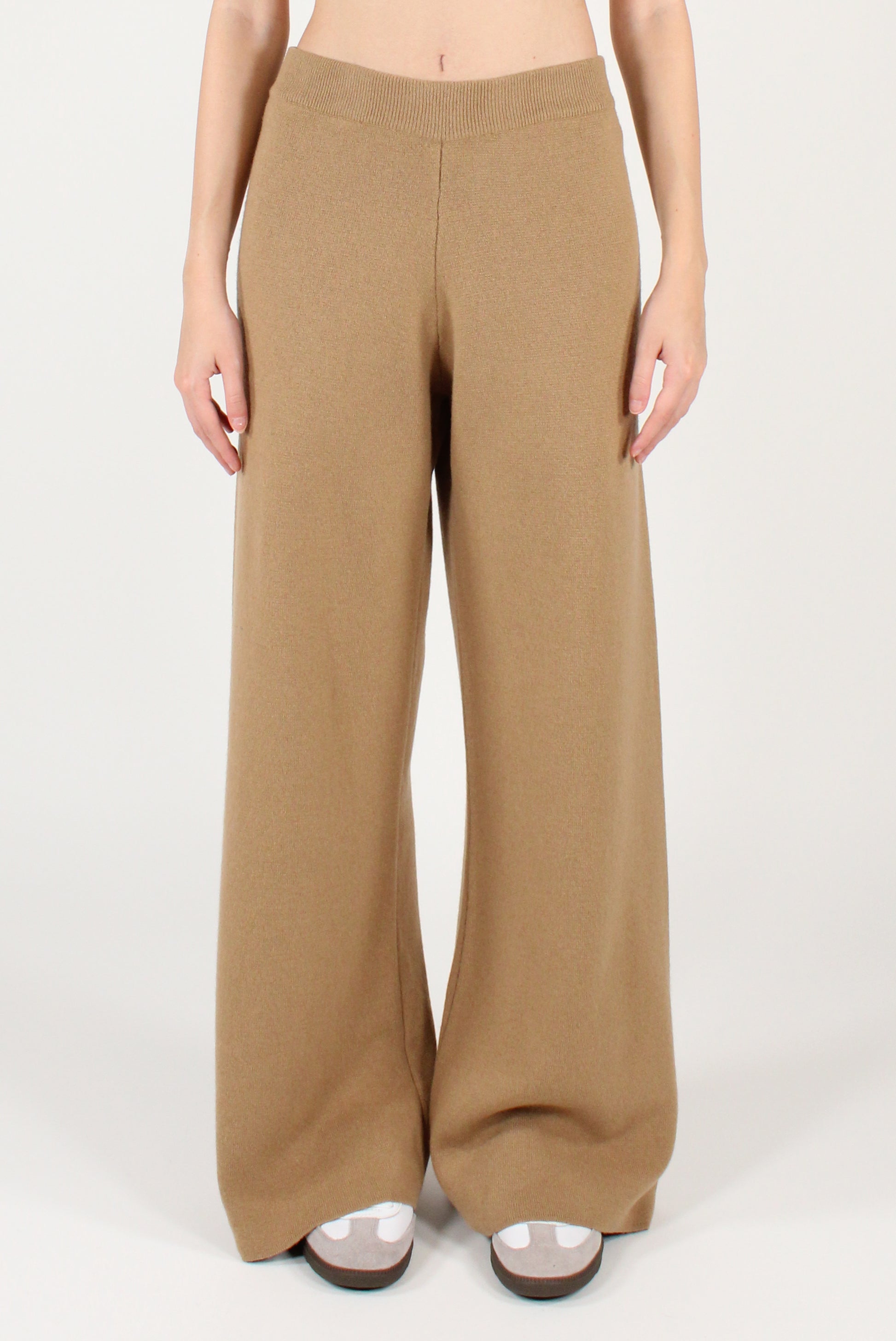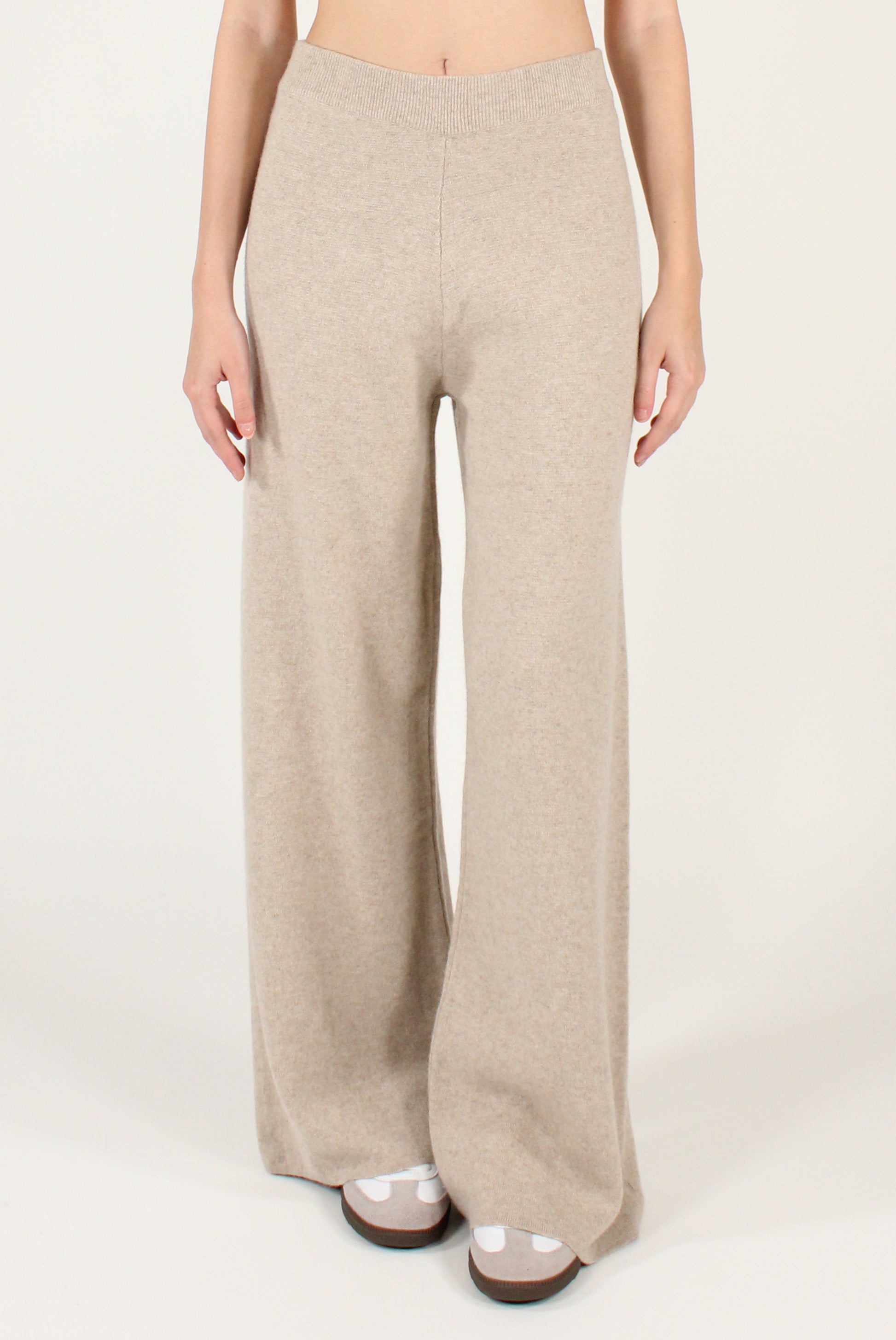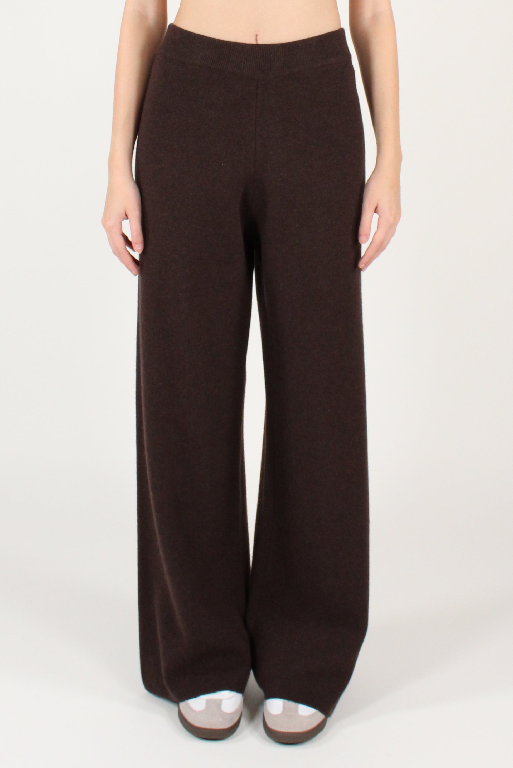 Pantaloni a palazzo in maglia misto lana. Con elastico in vita con dettaglio costine. Maglioni coordinati disponibili.