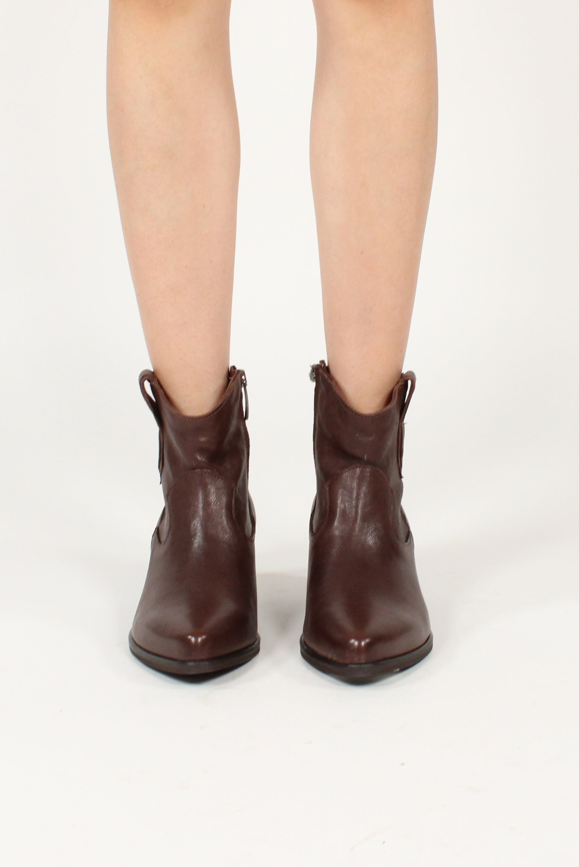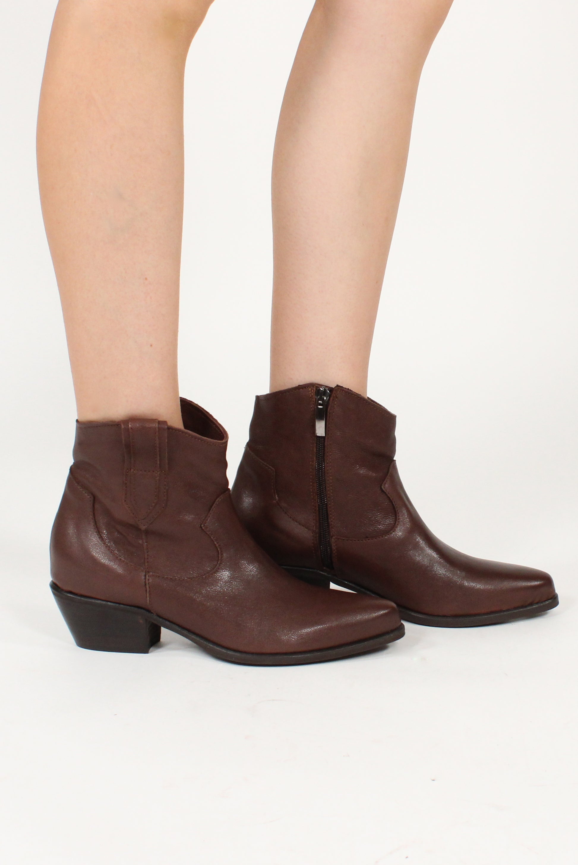 Stivali texani bassi in pelle con chiusura a zip laterale interna. Altezza gambale 15 cm, tacco: 5 cm.