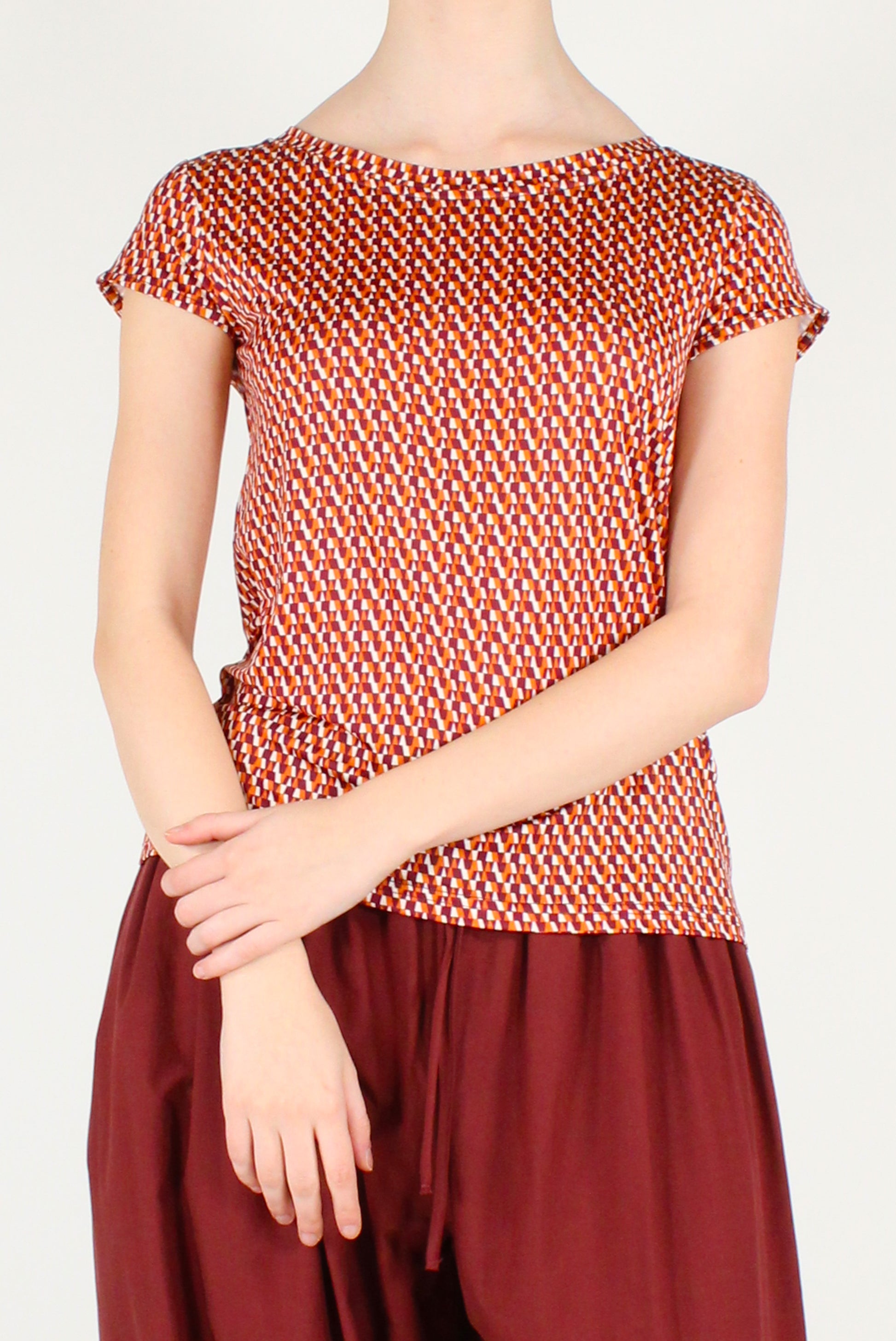 T-shirt con stampa geometrica elasticizzata. Girocollo e tessuto anti piega per massimo comfort. Perfetta per look pratici e moderni.