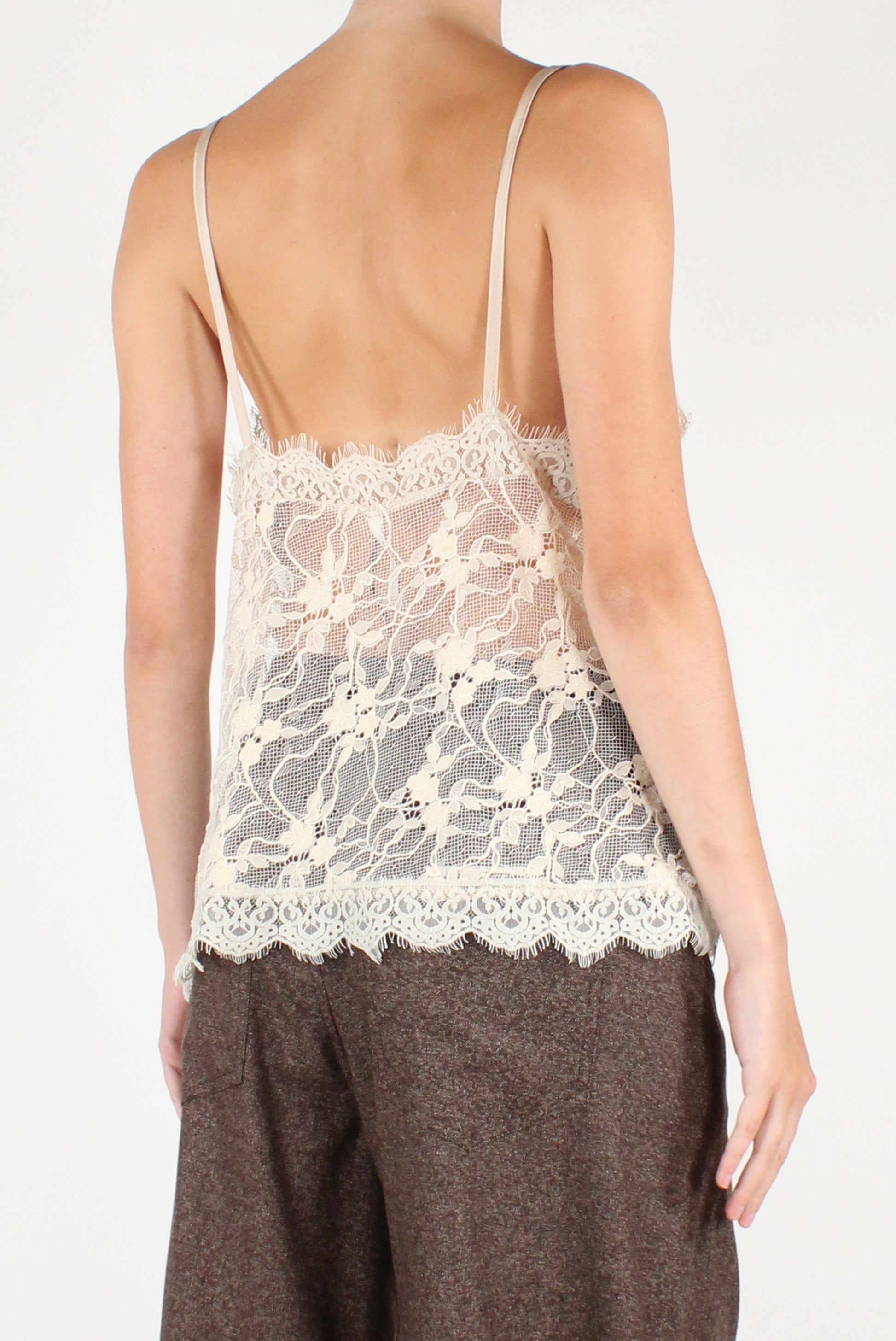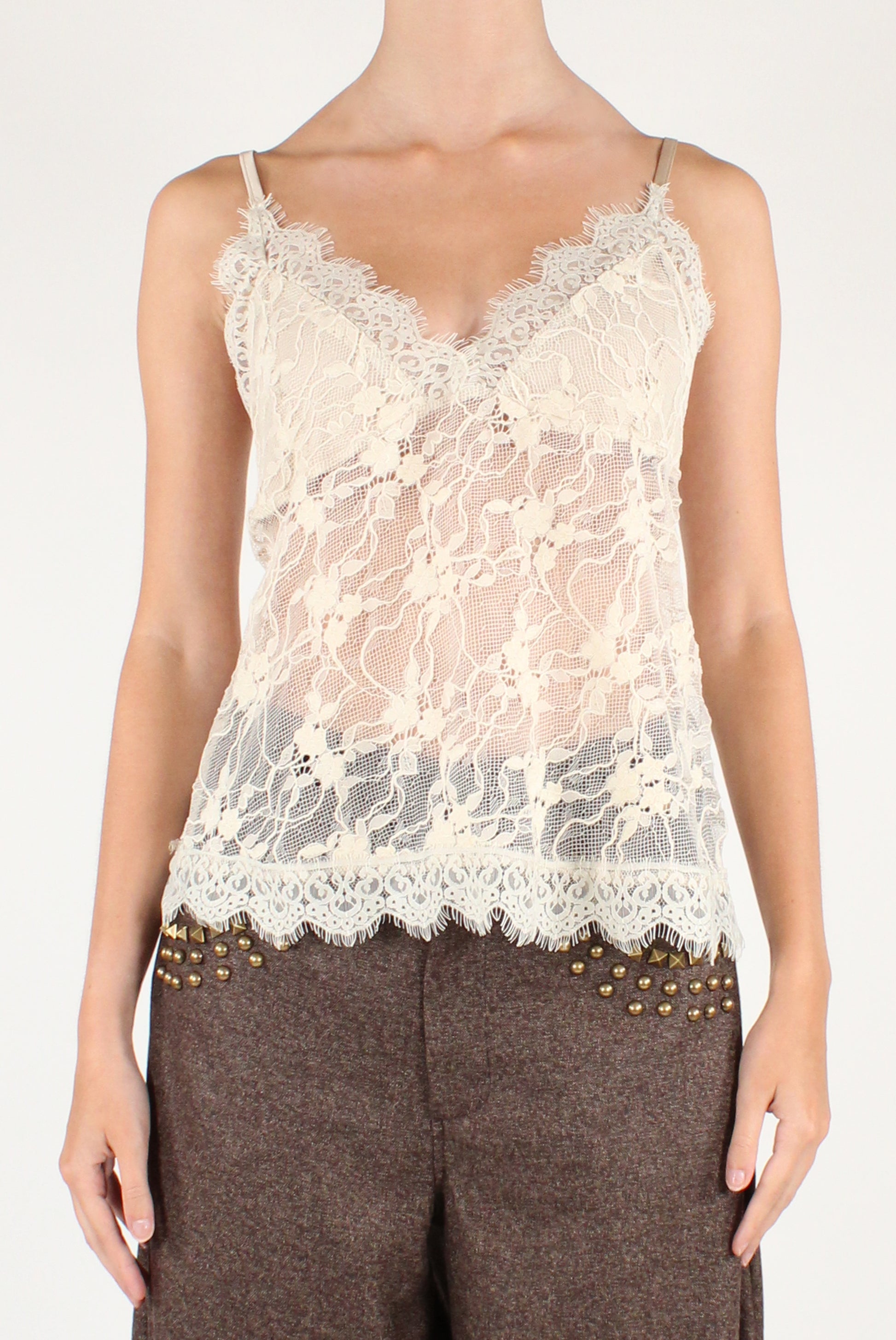 Top smanicato in pizzo. Elasticizzato, semi foderato.